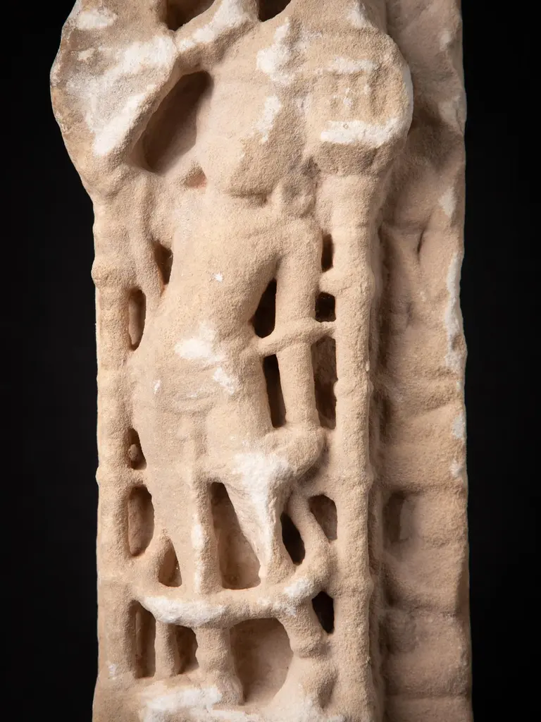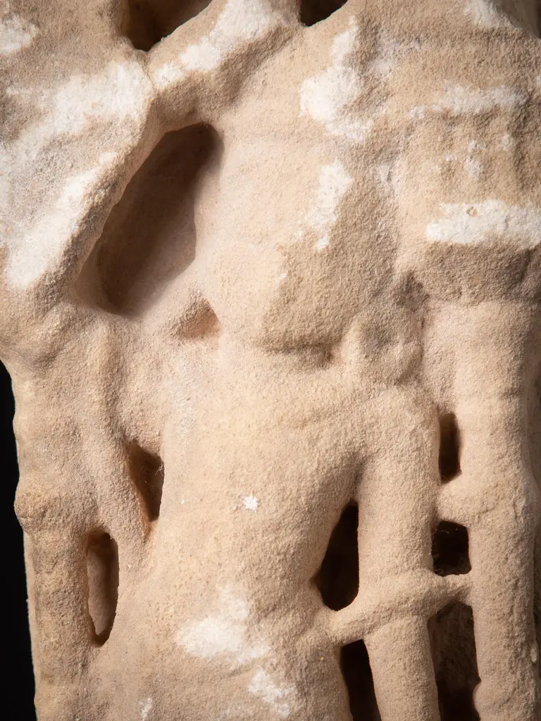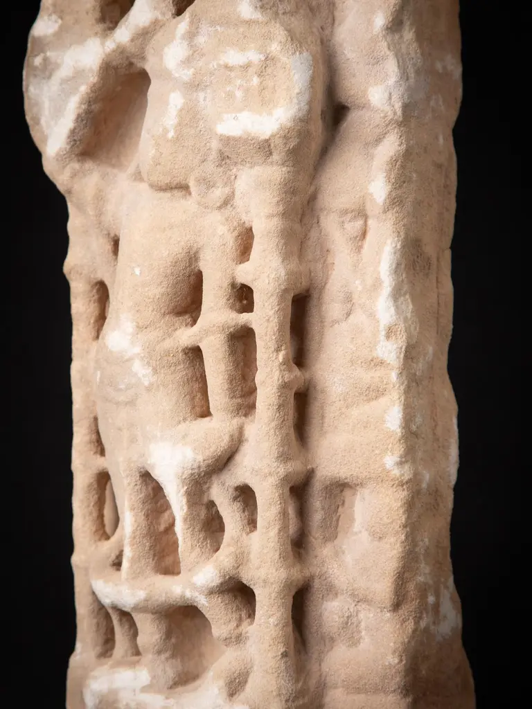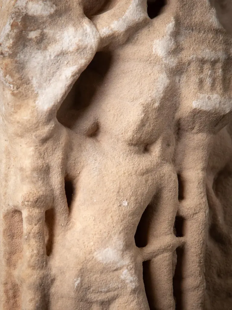 Antique marble statue from Jain temple from India, 14th centuryMaterial : marble32,5 cm high14,2 cm wide and 9,5 cm deep14th centuryOriginating from a temple in RajasthanIndra as a carrier of a flyfan. Is a permanent companion of Jina imagesOriginating from IndiaNr: IND-2-A
