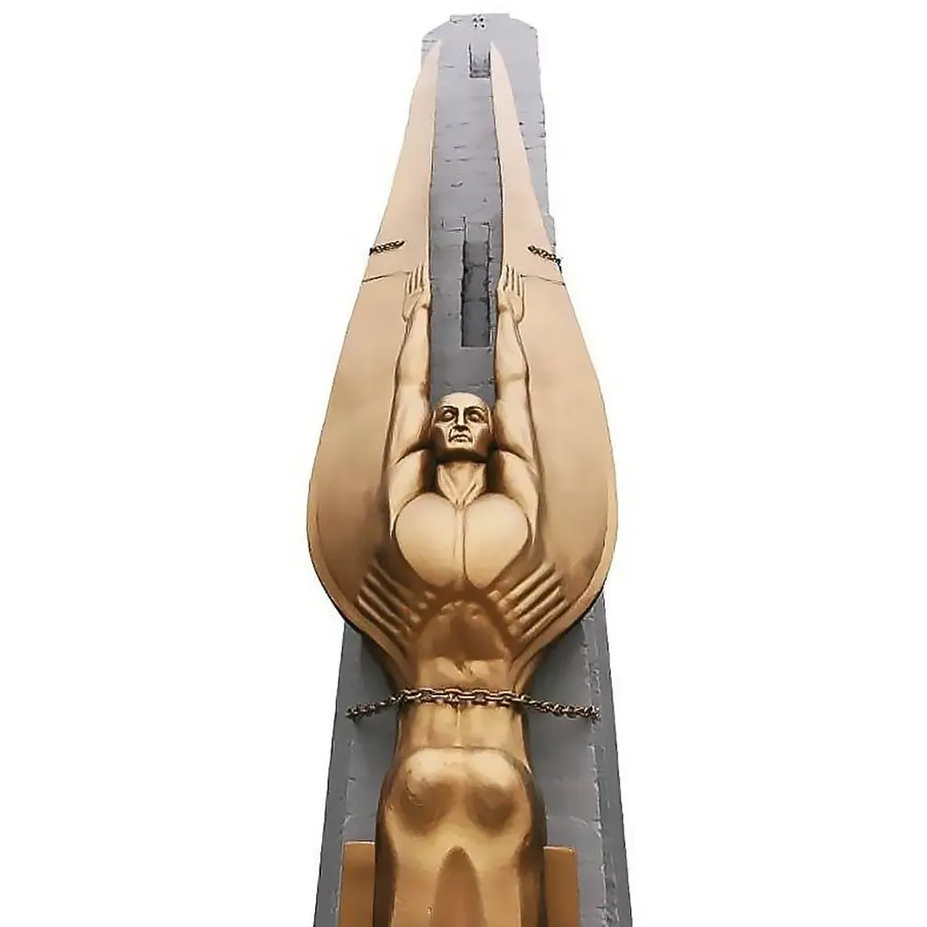 This 17-foot angel sculpture entitled "Wings of the Republic" is rendered in fiberglass, may be used inside or outside, and may be finished in silver or gold. There is a 4-week lead time for refinishing. It is perfect for a grand entrance to a home and venue.The angel replicates Oskar Hansen's 1936 "Winged Figures of the Republic," designed for the Hoover Dam. The original is bronze, 30 feet tall on Hoover Dam. Multiples of the sculpture may be produced upon request. History: Norwegian-born and naturalized American sculptor Oskar J.W. Hansen designed many of the sculptures on and around the Hoover Dam. His works also include the monument of the dedication plaza and a plaque to memorialize the workers.The sculpture was originally produced for the 1997 film "Buddy” starring Rene Russo. The statue was also used in "Batman & Robin" (1997) and "Catwoman" (2004) in addition to several music videos.Please contact the showroom for further details.Messurments: 208" Tall X 42" Wide X 38" DeepUnited States, 1997