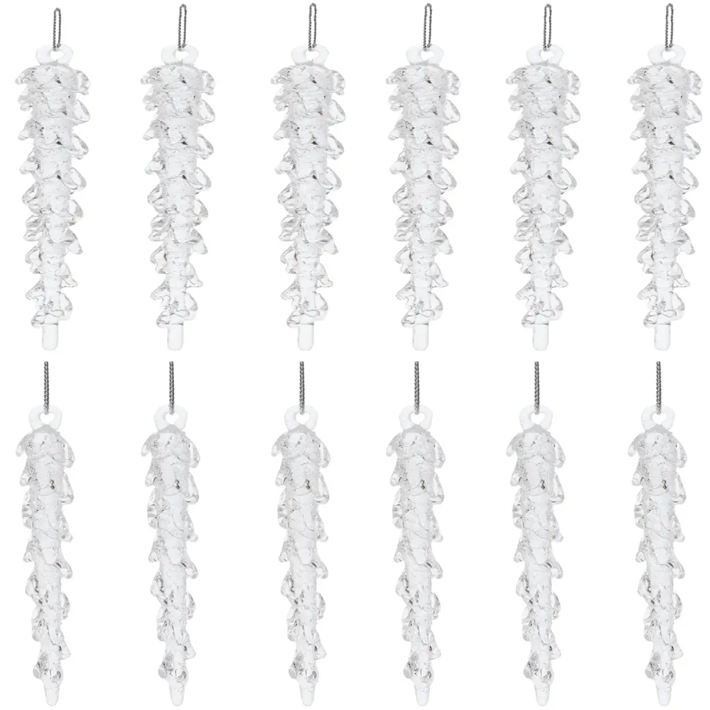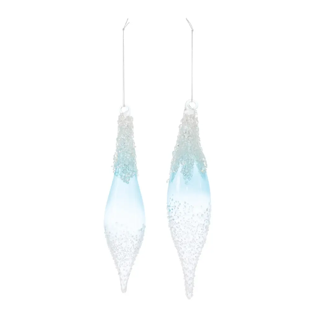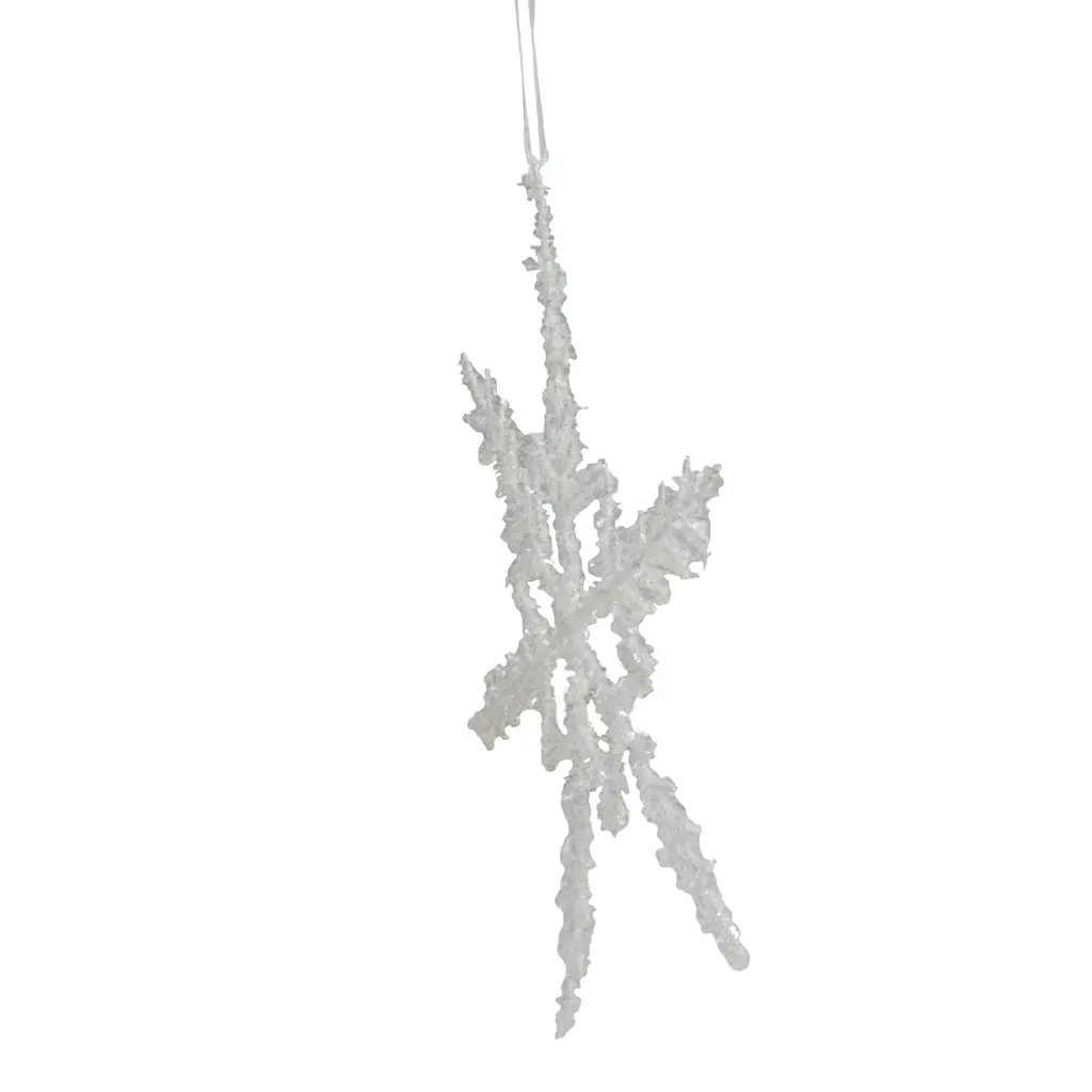 Hang these oversized frosted icicle ornaments on your tree for a touch of wintry charm. The two generous-sized icicles will glisten in your lights creating the illusion of fresh fallen snow. Perfect for conjuring the spirit of Christmas mornings filled with anticipation of what lies under the tree, their extra-large size makes a dramatic statement when hung from tree branches or along mantels and stair railings. Crystal ornament. • Impressive Size: Make a bold statement with our Oversized Icicle Ornaments, towering at 24 inches tall, ideal for adding drama to your Christmas tree or indoor displays. • Durable Plastic Construction: Crafted from high-quality plastic, these icicle ornaments are robust and lightweight, ensuring secure hanging without weighing down your tree branches. • Classic White Color: The timeless white hue of these ornaments infuses your holiday decor with a wintry charm, effortlessly complementing any indoor setting. • Versatile Decor: Beyond the tree, these oversized icicle ornaments can adorn mantels, doorways, or windows, spreading festive cheer throughout your home. • Complete Set: Elevate your festive ambiance with our set of Oversized Icicle Ornaments, designed to transform your space into a winter wonderland with ease. • Experience Timeless Elegance with Sullivan's Home Decor - Celebrating Over 55 Years of Excellence! Explore our extensive collection of quality products, meticulously curated to suit every style, season, and occasion. From classic designs to on-trend accents, Sullivan's Home Decor seamlessly blends tradition with modernity, ensuring there's something special for everyone. Transform your living spaces with our enduring commitment to style and sophistication. • Ornaments measure 1.5"L x 1.5"W x 24"H, 1.25"L x 1.25"W x 18"H