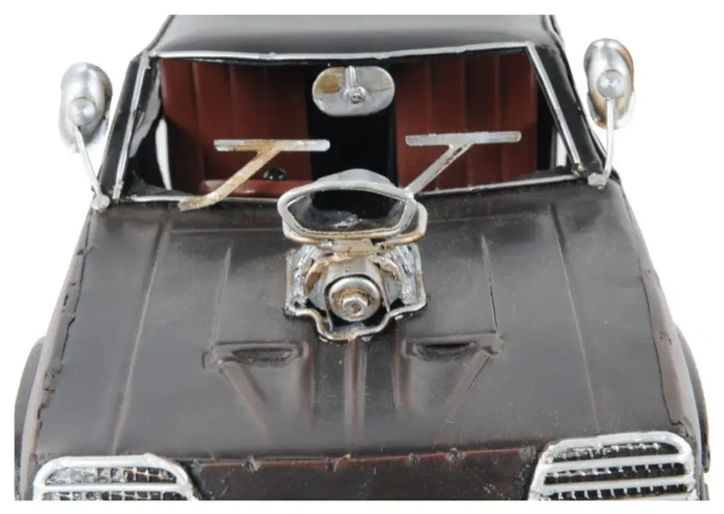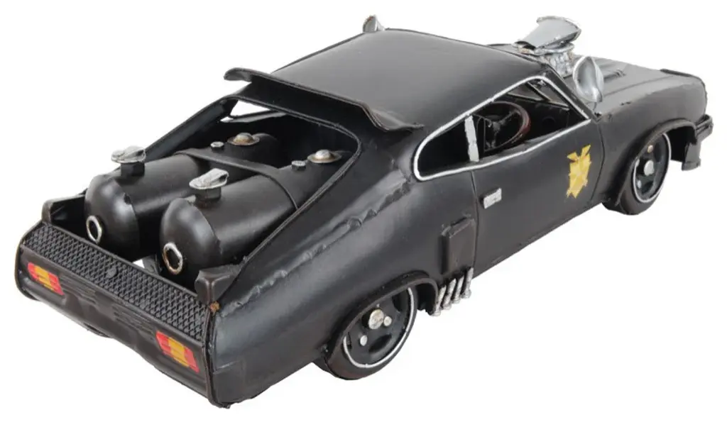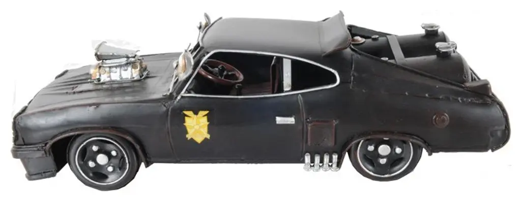 A true gem for automobile and cinema enthusiasts, the 1973 Mad Max V8 Interceptor Sculpture is a super-accurate replica of the car Mad Max used in this iconic 1973 movie. From the right-side steering wheel to the roof spoiler, and "Maintain Right" badging this model is 100% accurate to the original car used for this film taking place in dystopian Australia. The model is built entirely out of metal to a scale of 1:17 making it perfect for displaying. 3.5" x 11" x 4"
