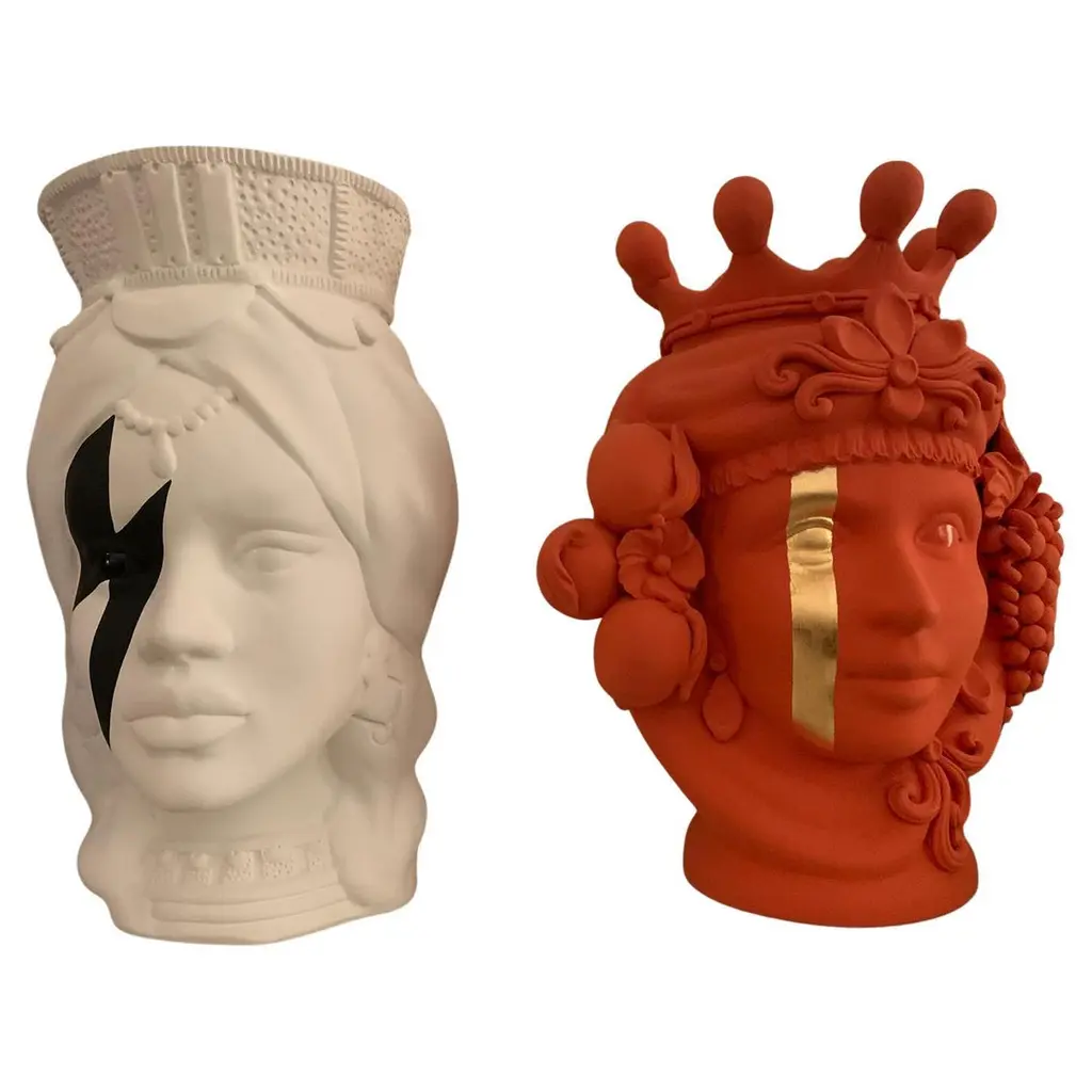 2 Moor Heads "Futuristic Women", Handmade In Italy, 2019, Unique Design