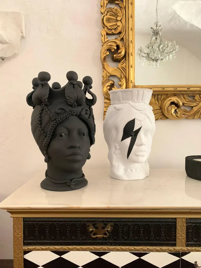 This collection is a work of art that make a statement in modern décor and in the modern cultural art world. It can be used as a vase containing flowers, or as a beautiful centerpiece or home décor object.Its design is inspired by the Moorish-inspired sculptures in Sicilian ceramic tradition. All Made in Italy:Made in Italy furniture means design, quality, style and sophistication. All the details are handcrafted and all the pieces are made to order, so they can come with different colors (see color palette in the pictures).This works are simply amazing with their incredible elegance. No wonder Dolce & Gabbana choose them to décor their most famous shop in Milan.Have yourself a truly unique piece!
