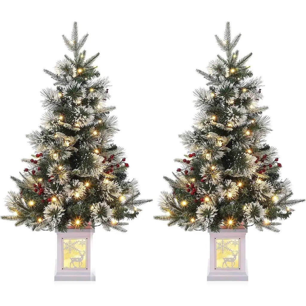 2 Pcs 3Ft Pre-Lit Mini Artificial Christmas Tree With Led Lights - Green