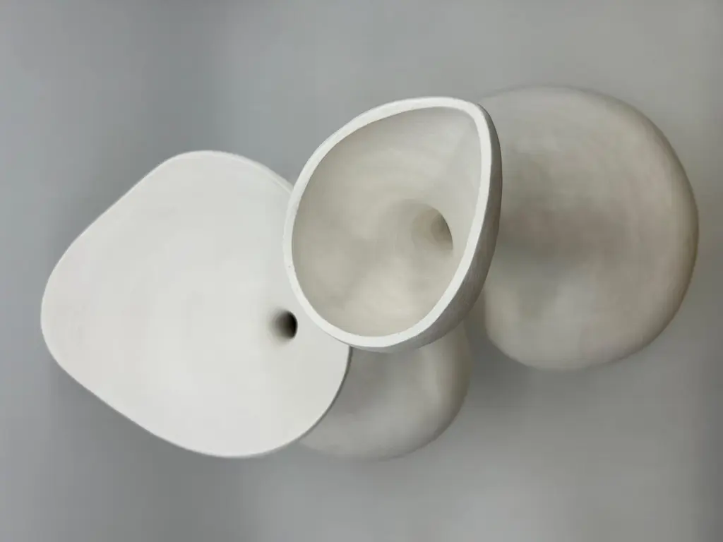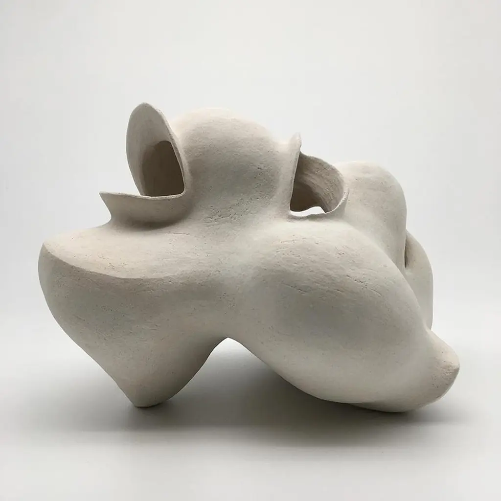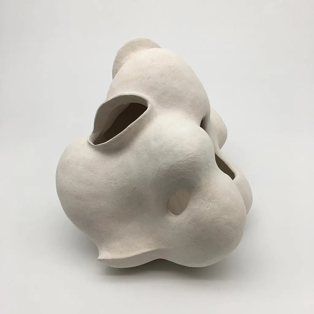 #2 Sculpture by Evamarie PappasDimensions: D 16.51 x W 16.51 x H 50.16 cmMaterials: Stoneware.This sculpture is incomplete. it will be fired once again with an underglaze.For Evamarie Pappas, making art is a family affair. She lives and works in the Florida home she shares with her husband, Gary Oglander, an abstract painter. The pair, who met while Evamarie was studying art at Ringling College of Art and Design in Florida, frequently collaborate on ceramic works and often exhibit with their sons, Daniel and Eric. "We critique each other honestly," she says. "There was never a competition between us."Organic in form, Pappas's ceramic sculptures draw inspiration from the forests and gardens that surround her home, as well as the ocean. She notes, "I would say I'm most influenced by nature. I often think about a plant or a seed pod. I think about how they might move or grow." Her process is intuitive and unconscious. "Once I start, I put everything out of my mind and let [a piece] become what it wants to become," she says. When a form is complete, Pappas sometimes hands the vessel over to her husband to paint. "Every time he paints something, I feel like he has enhanced my work," she says. For Pappas, life itself is a form of artmaking. "I work long hours, and I love it. I sleep really well. And I have a lot of energy."