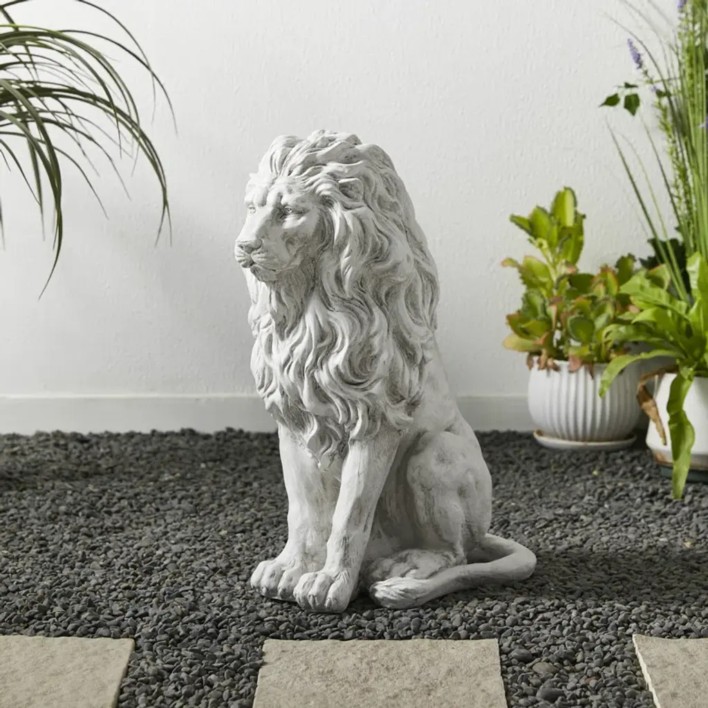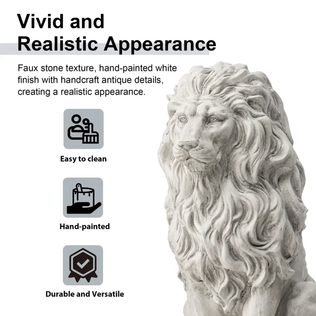 With this regal guardian lion statue at the entrance of your home, yard or garden, brings a feeling of stateliness and a touch of artistic to your space. This lion sculpture is made of high quality MGO and fiberglass that is very durable. Compared to the traditional stone or concrete statue, it is light weight, easy to move to anywhere you like. This regal lion design looks vivid and interesting, the handmade distressed details with imitation rock looking gives a sense of vintage and superior touch. It will be a great addition to your home, garden, backyard or patio!