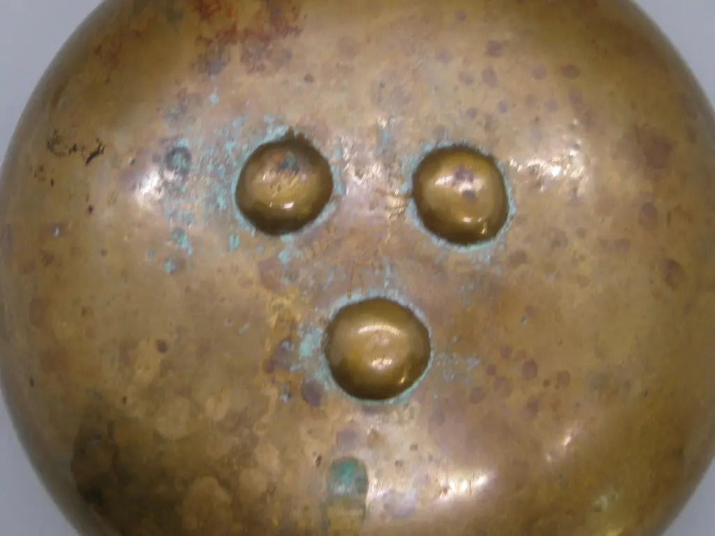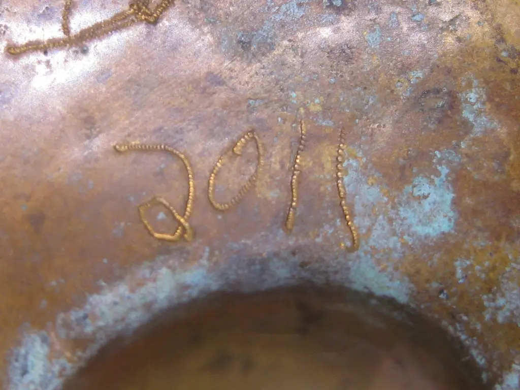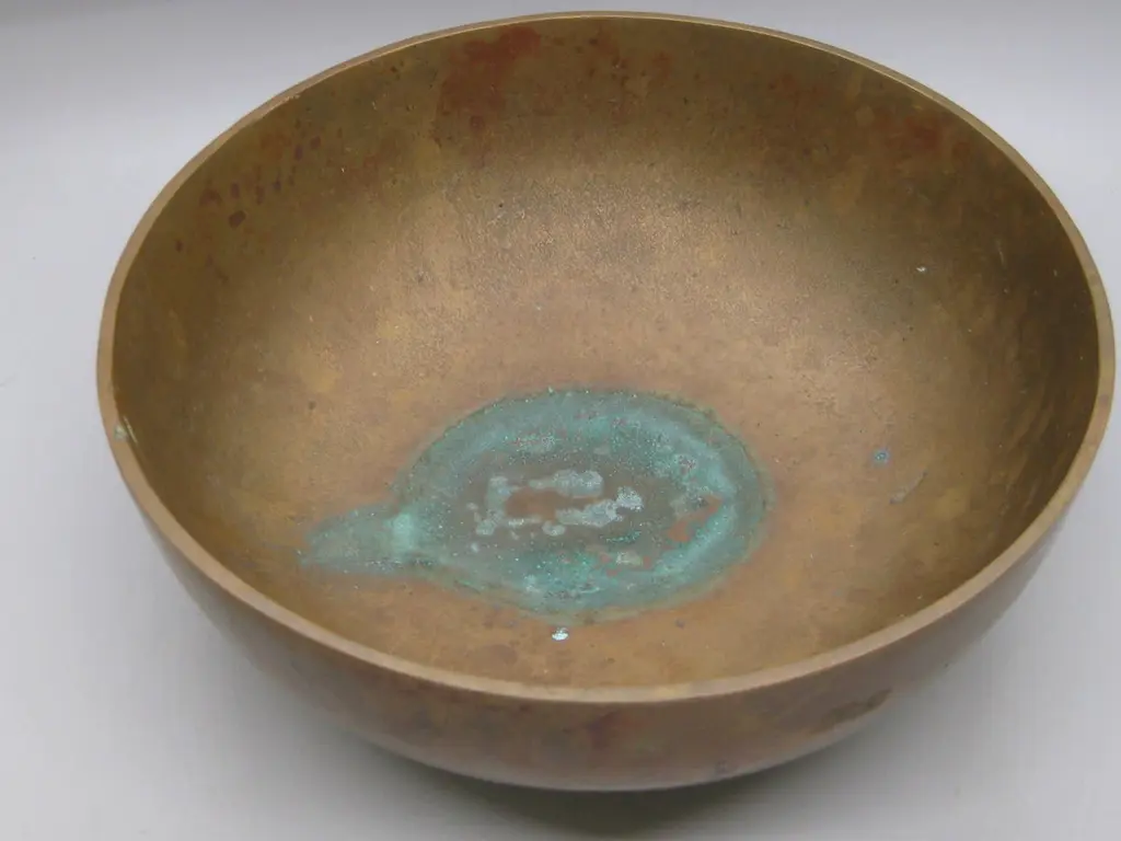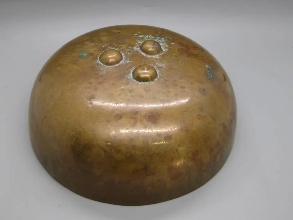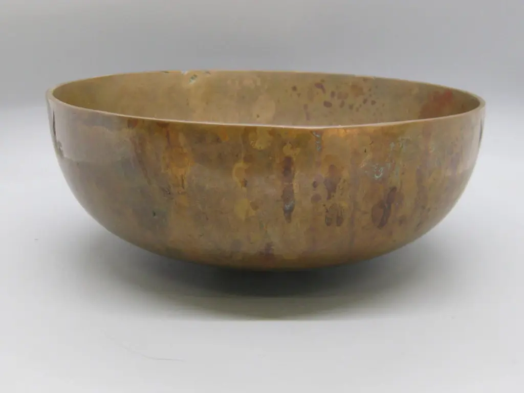 We are offering a wonderful solid bronze modernist footed bowl by artist Alma Allen. This bowl dates from 2011 and is number 21 of 250 made. Signed with the artists initials, numbered and dates on the bottom. Wonderful form and design. The bowl is in very nice condition with a wonderful patina. It can be polished if you desire to do so. Inner surface has some green tarnish from age and will polish off. No cracks, no repairs, no chips and no dents. A couple casting marks but from when the item was made and are original to the pieces. Weight unpacked is 4 pounds 2 ounces.Measures: 3" tall by 7 1/2" at the widest point.