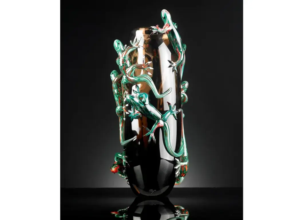 In 1964, the creativity of Toni Zuccheri conceived it with dark wings, ruffled red feathers, and golden leaves adorning its bright Red crown. Its appearance strikes the eye, capturing and holding the viewer’s attention. Additional Information:Material: CrystalColor: MulticolourDimensions: W 40 x D 40 x H 38 cm.