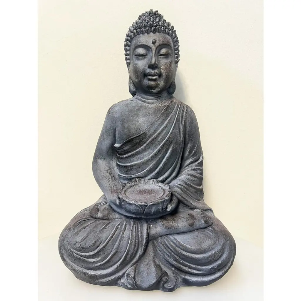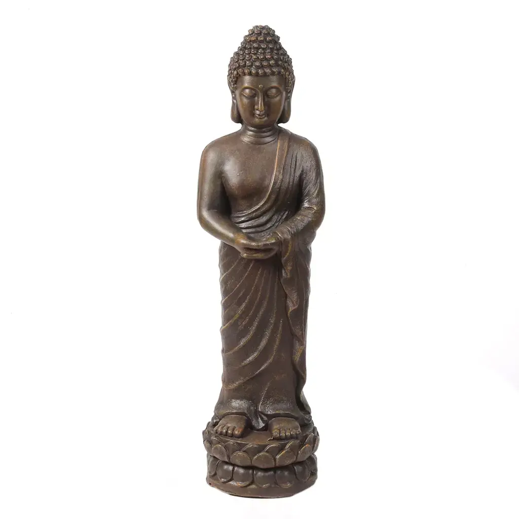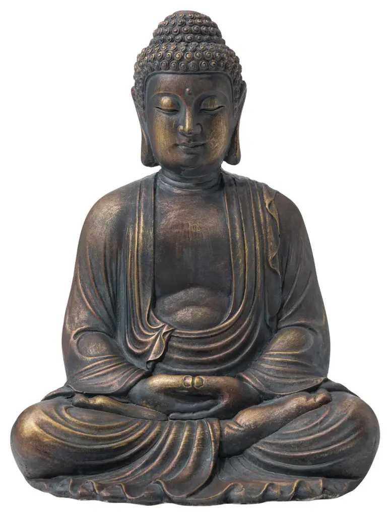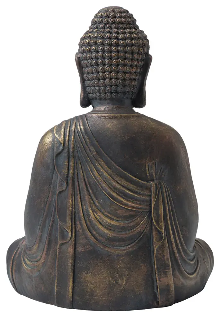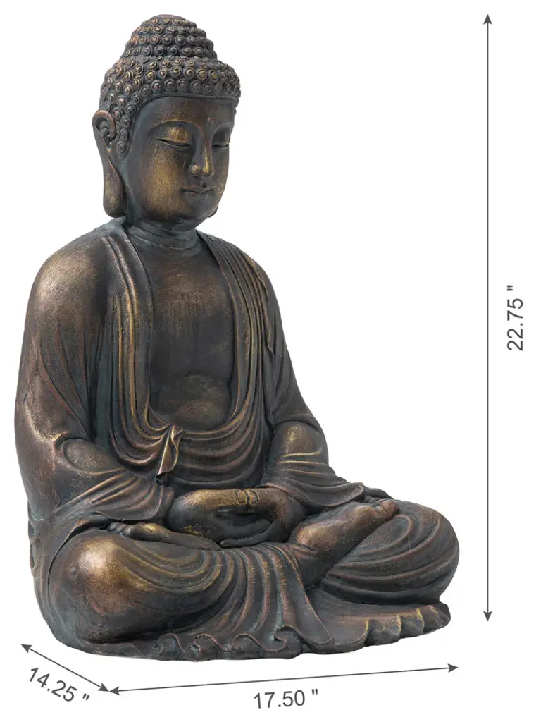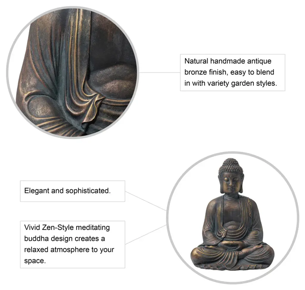 Enhancing your garden or porch with this meditating Buddha statue, add a touch of Zen to your space, creats a meditave, tranquil and relaxing atmosphere. It is made of MGO and fiberglass, which is anti-rust, weather-resistant and very durable, ideally for all the year around. Handmade antique bronze finish and distressed details makes it look natural and charming. This Zen-style Buddha statue is a perfect addition to your garden, backyard and patio, also indoors.- Elegant and sophisticated. - Natural handmade antique bronze finish, easy to blend in with variety garden styles.- Weather-resistant, perfect for indoor and outdoor use, such as balcony, garden, patio or backyard.- Constructed of 95% MGO and 5% fiberglass, high quality, very durable.- Compared to the traditional stone or concrete statue, it is light weight, easy to move to anywhere you like.