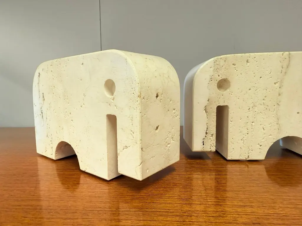 2X Elephant Sculpture Travertine Bookends By Enzo Mari, Italy, 1970s
