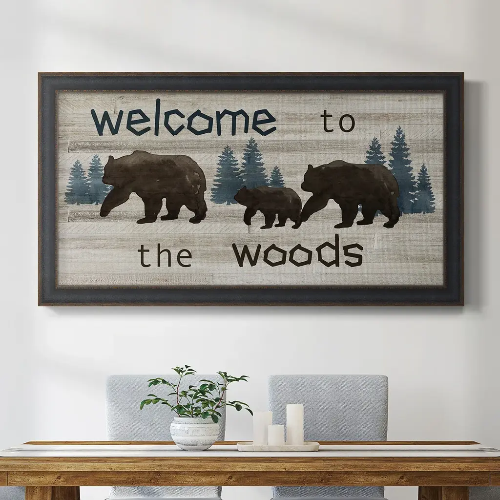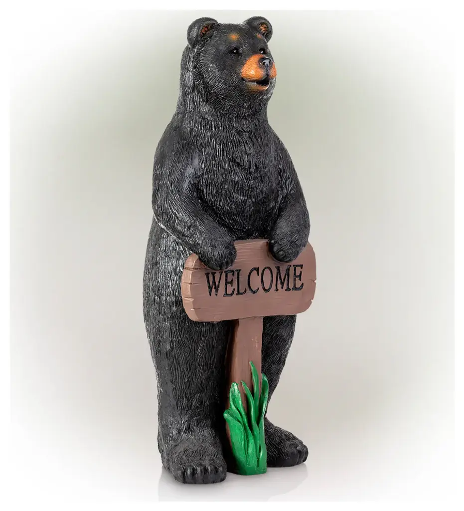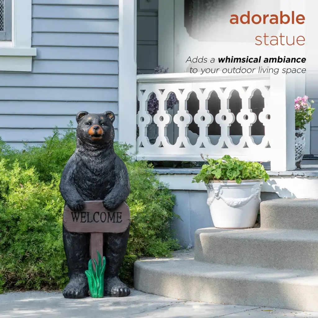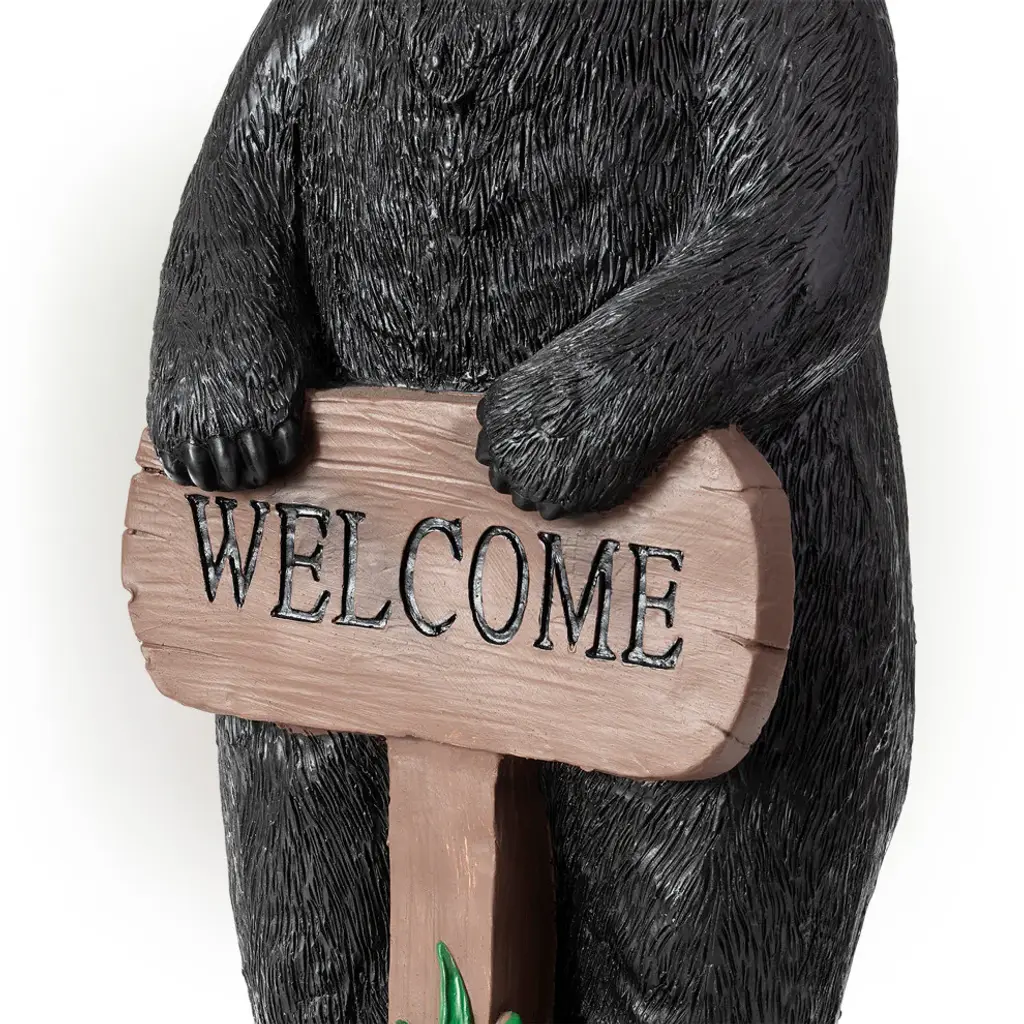 36" Tall Outdoor Standing Black Bear With Welcome Sign Yard Statue Decoration