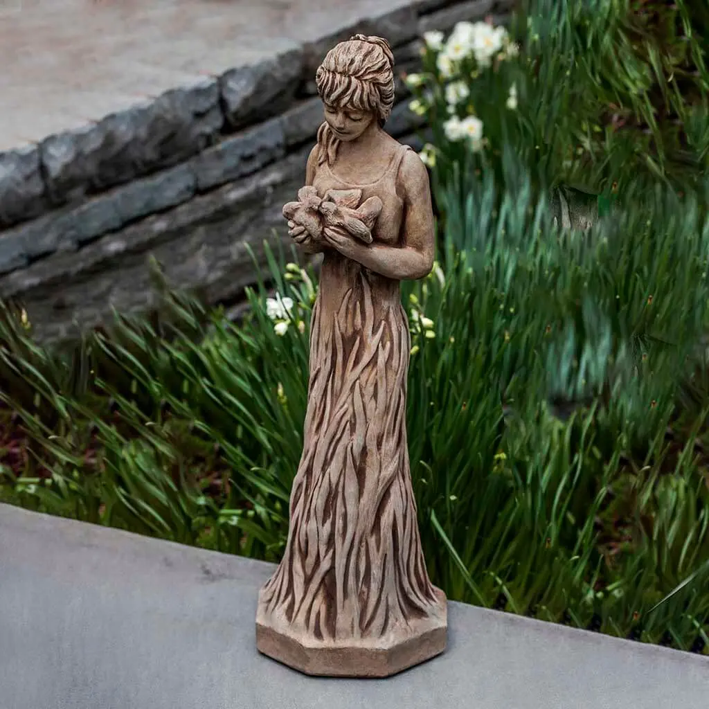 38" Tall Standing Girl With Bird "Holly" Magnesium Statue