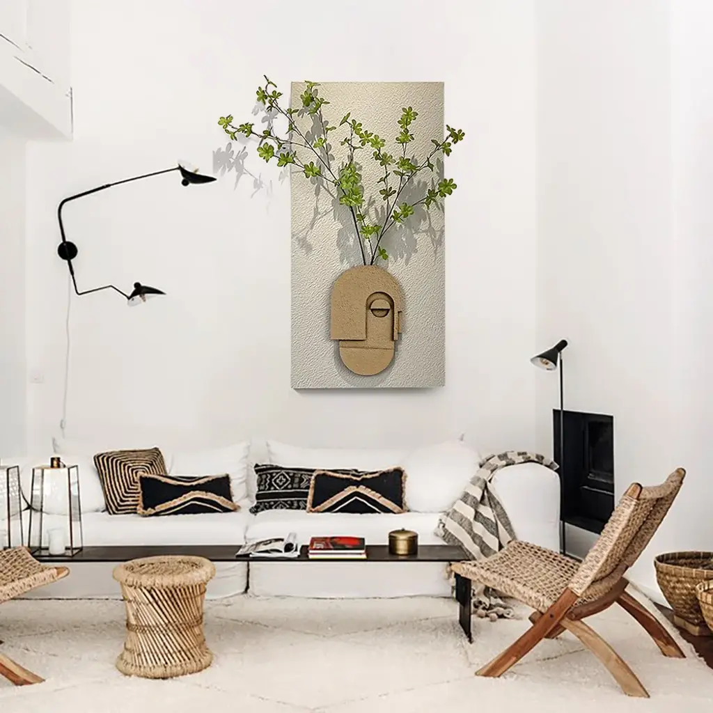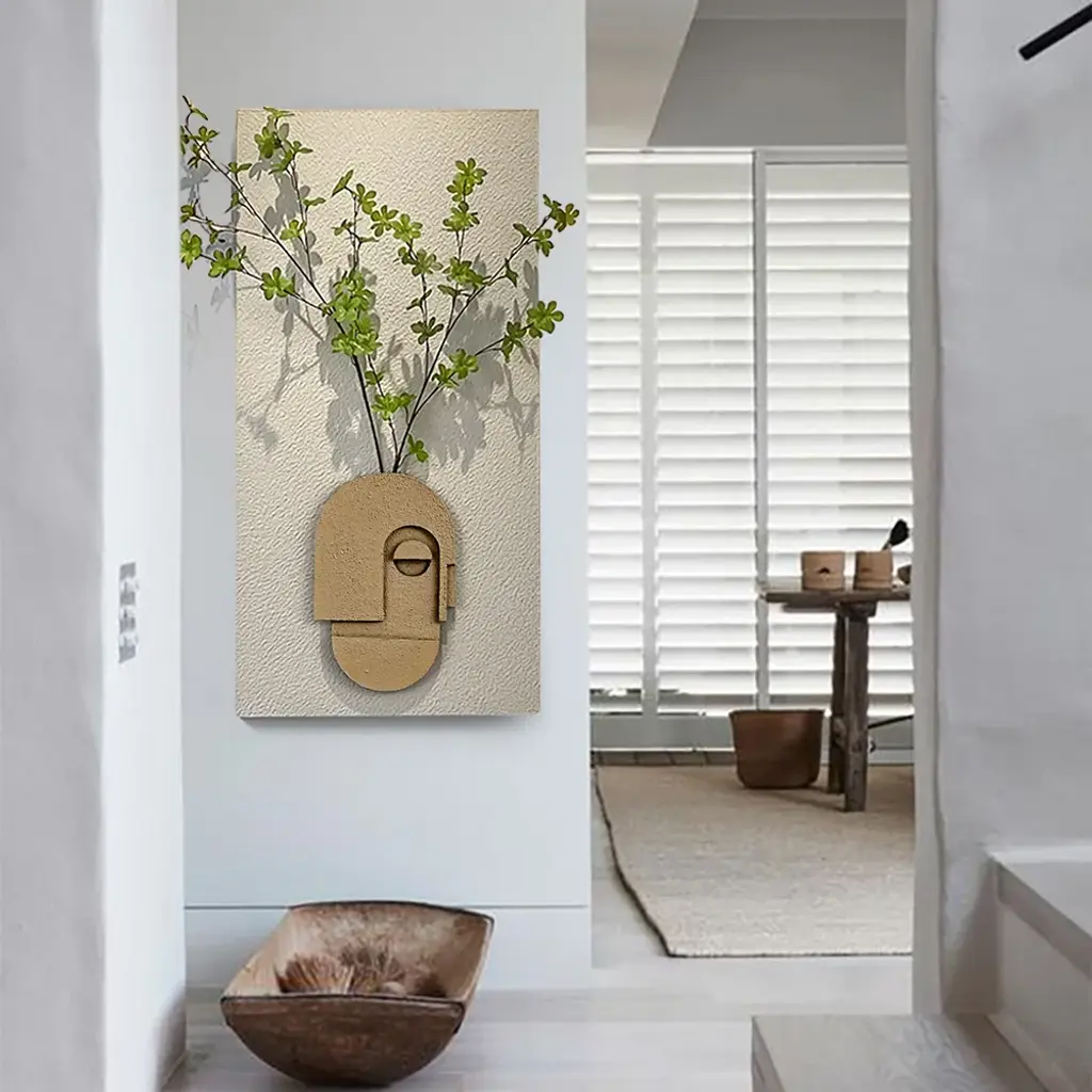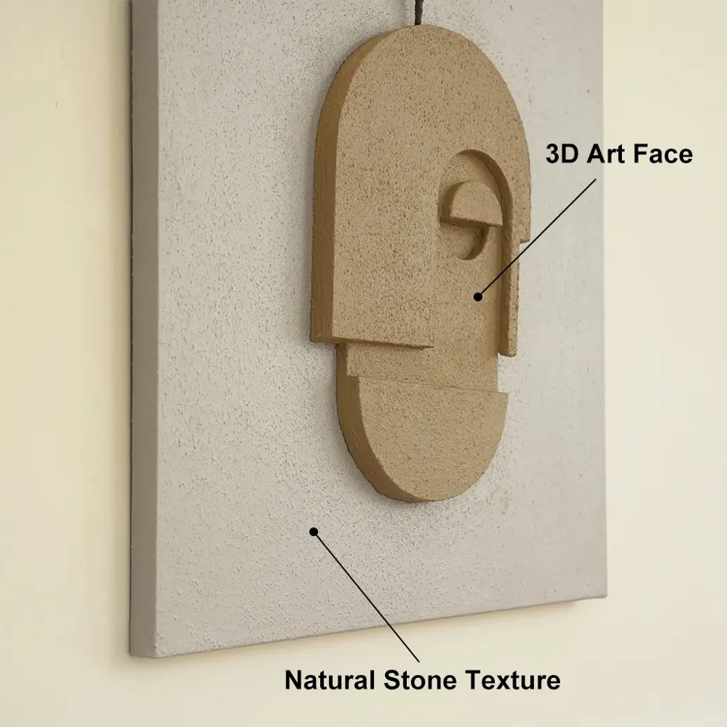 This is a wall-mounted artificial plant in 3D, combining natural sandstone material with abstract hand-carved modern character and natural green plants. Modernity and nature can be integrated by the borderless design of hanging paintings in various styles of scenarios.
