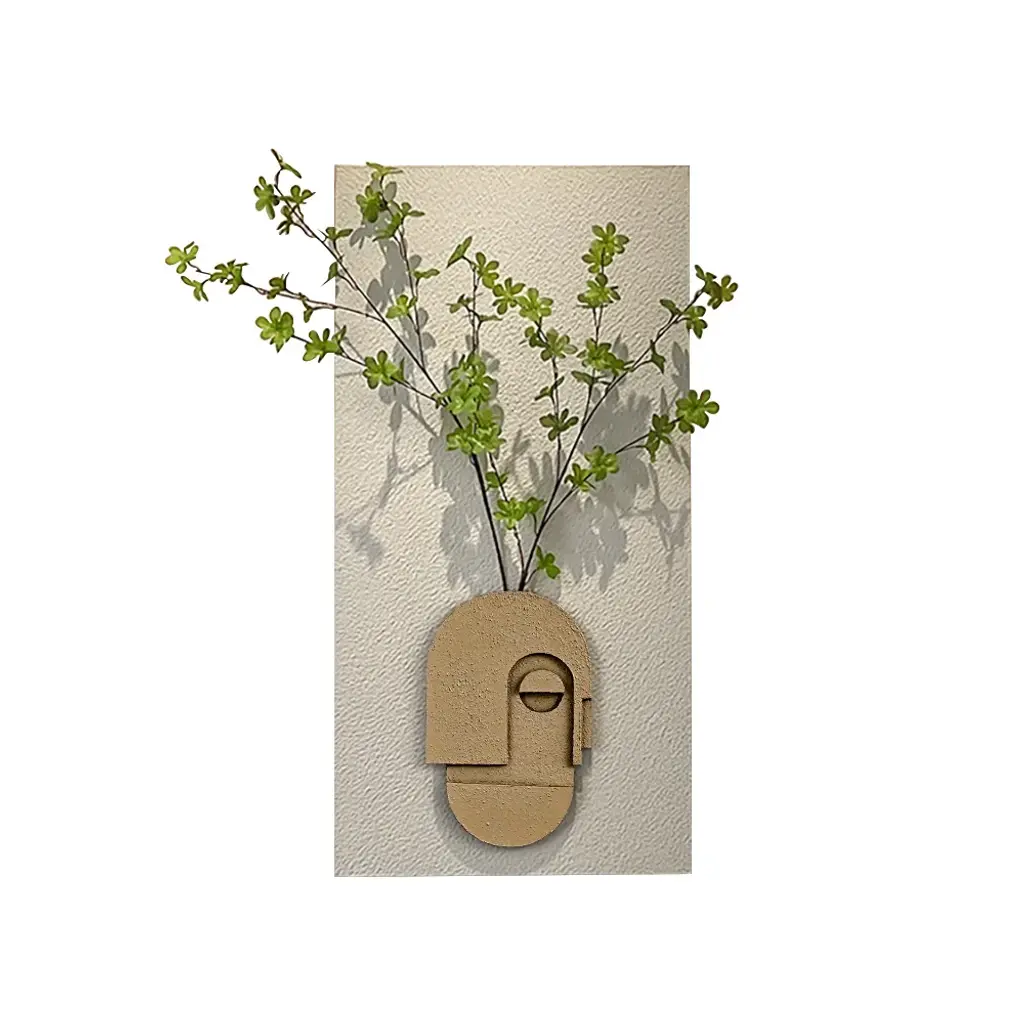 3D Abstract Natural Sandstone Handmade Sculpture With Artificial Plants Wall Decor