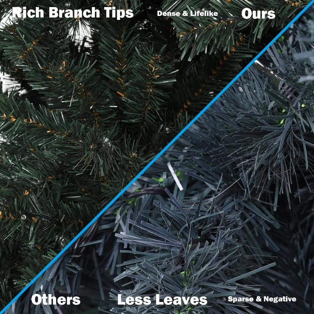 Eco-Friendly and Durable Material: Our Christmas tree is crafted with high-quality PVC, ensuring robust anti-crush durability for long-lasting use. The 398 branch tips are designed to mimic a real Christmas tree, blending eco-consciousness with natural beauty.Innovative Auto-Spread and Close-Up Design: Simplify your holiday decorating with our tree's unique design. Branches automatically fall into place during assembly and retract for effortless storage, making it a convenient and beautiful addition to your festive decor.Pre-Lit with 200 LED Lights: Illuminate your celebrations with 200 warm white LED lights pre-installed on this Christmas tree. They create a mesmerizing festive atmosphere, perfect for homes, offices, or parties.Sturdy Metal Stand with Floor Protection: The high-density iron base provides firm stability, ensuring the tree stands tall and upright. Plus, the plastic cover on the stand’s end safeguards your floors from scratches.Eye-Catching and Compact Design: Featuring a thick metal trunk and a sturdy stand, this 4.5Ft hinged Christmas tree maintains a straight posture, making it a striking focal point in any room during the holidays.