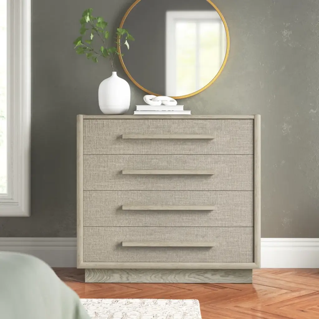 This dresser effortlessly blends form and function, featuring four spacious drawers that cater to all your storage needs. Crafted from solid wood, its design is both timeless and robust, ensuring it stands as a staple in your bedroom decor. The soft/self-close drawers and dovetail joinery add a touch of sophistication and practicality, making organization a breeze.