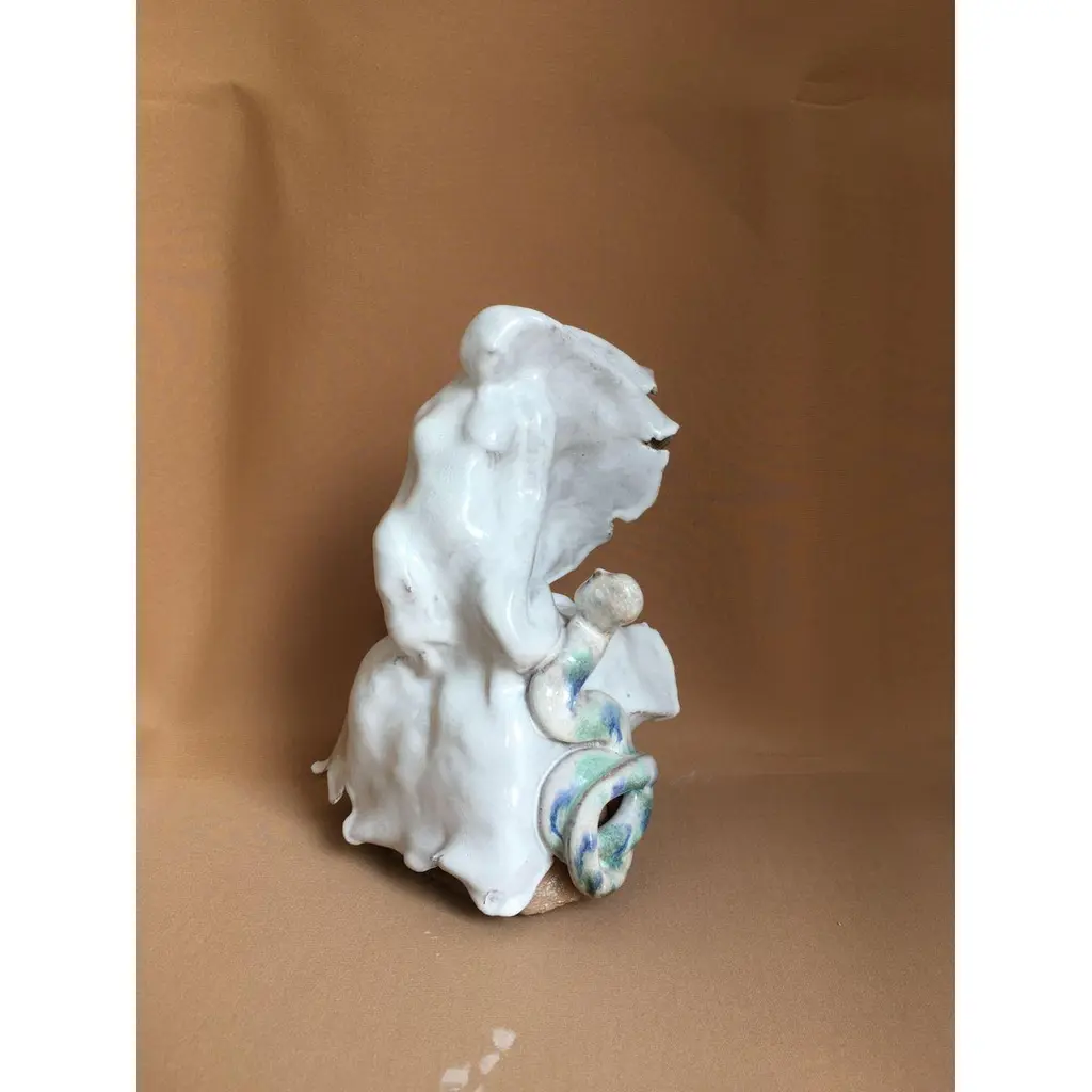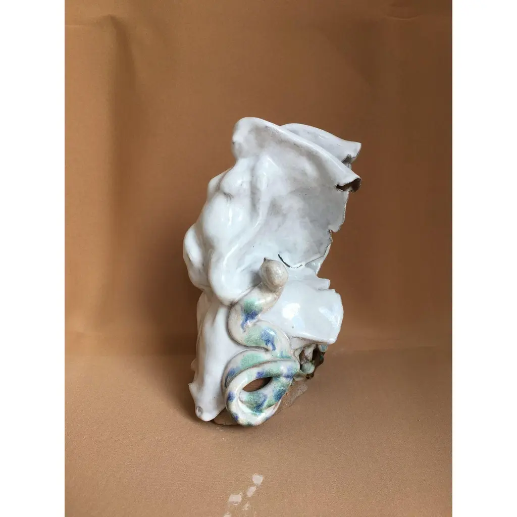 40 Days into the dessert sculpture by Ana Botezatu.Dimensions: D 17 x W 19 x H 23 cm.Materials: glazed earthenware.Ana Botezatu (b. 1982, Bra?ov (former Kronstadt), Romania) lives and works in Berlin. She works with ceramics, drawing, book illustration, set design, puppet theatre and ethnographic research. Ana Botezatu studied ceramics at the Art and Design University Cluj-Napoca.