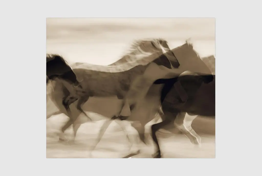 40"x50" Filmed Horses With Espresso Frame | Animals | Print | Framed Canvas Art | Horizontal