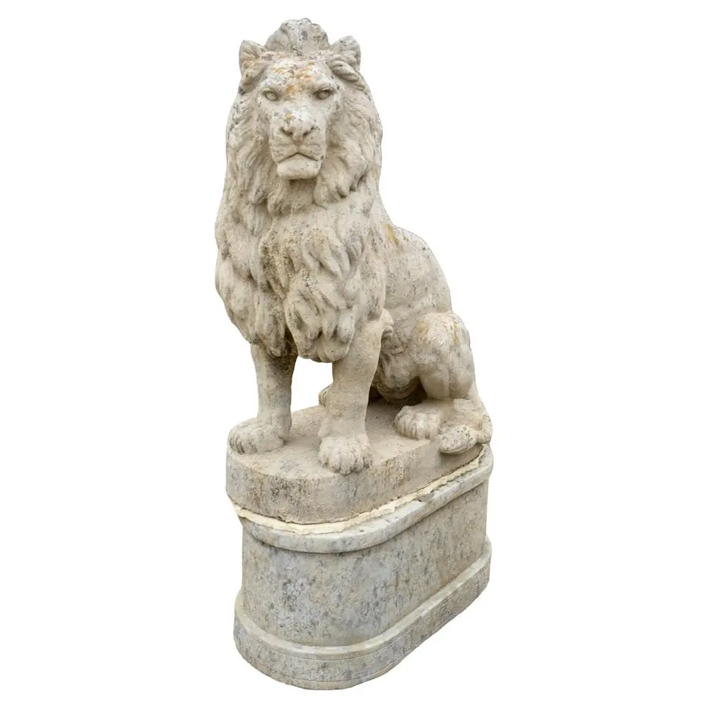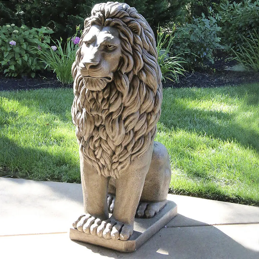 Commanding a regal and stately presence, our Grandessa Sitting Lion Sculpture watches guard over pristine garden sanctuaries, grand entranceways and driveways. Constructed from all-natural cast stone and finished in a classic iron finish, this articulately detailed sculpture towers to 4 feet of nobility. Sculpture makes a regal appearance in outdoor spaces Stands at a generous 4' tall and weighs 700 lbs. Constructed from all-natural cast stone Classic iron finish Because of it's hand-applied nature, variances in finish may occur Naturally weathers outdoors Made in the USA. At Frontgate, our primary focus is quality. We guarantee that every product we sell will stand up to the supreme test – our customers' satisfaction. To learn more about our policies, visit our Shipping & Processing, Returns & Exchanges and Warranty & Price Guarantee pages.
