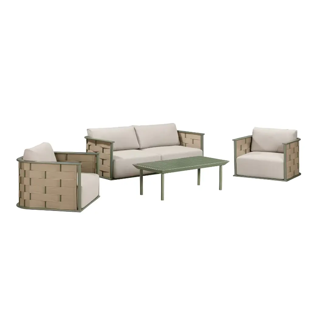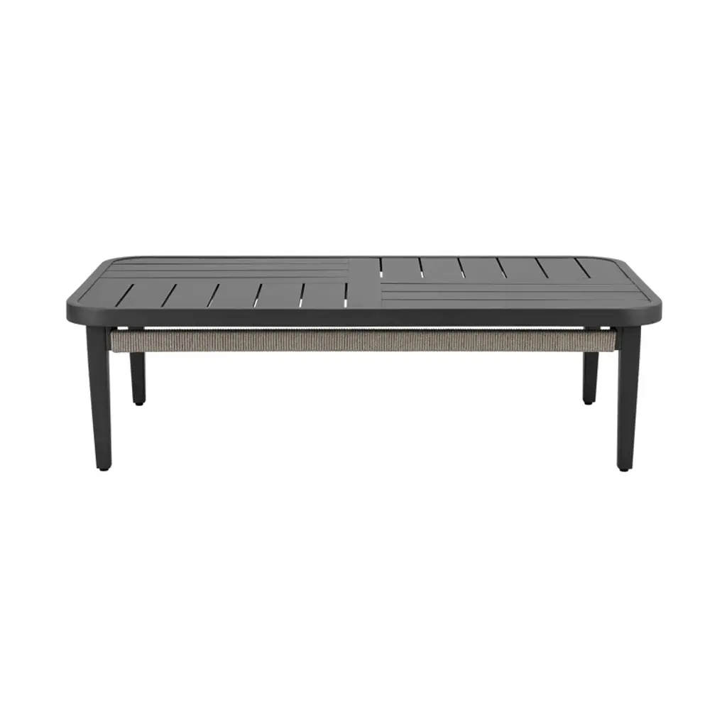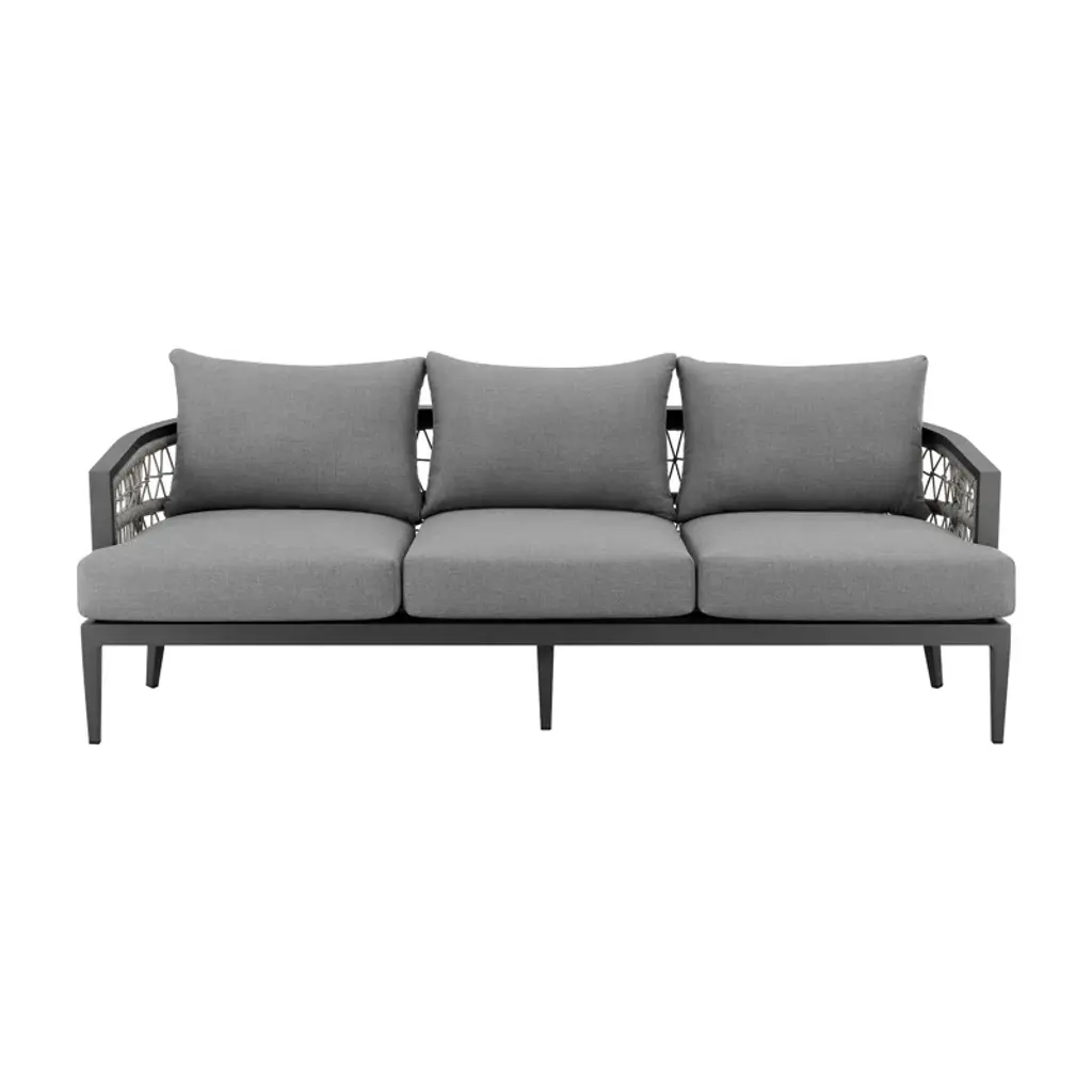 Introducing the Evalyn outdoor patio 4-piece conversation set in aluminum with light gray rope and cushions — a symphony of modern design and outdoor luxury meticulously crafted to redefine your lounging experience. The collection seamlessly blends sleek aluminum with inviting light gray rope detailing and plush earl gray cushions, creating a sophisticated and enduring ensemble. The Evalyn outdoor patio armchair, a masterpiece in itself, features a robust aluminum frame, ensuring durability and a contemporary aesthetic. Water-resistant and UV-resistant, it stands as a steadfast and stylish seating solution for your patio. The incorporation of light gray rope detailing adds a unique visual dimension, creating a captivating contrast with the sleek aluminum frame. Paired with earl gray cushions, it invites you to relax in both style and comfort, transforming your outdoor space into a sanctuary. Joining the ensemble is the Evalyn outdoor patio sofa, a fusion of contemporary design and outdoor luxury. With a sturdy aluminum frame, water-resistant and UV-resistant features, and the added charm of light gray rope detailing, this sofa remains a reliable centerpiece for your outdoor gatherings. Paired with earl gray cushions, it offers an inviting and luxurious seating option, perfect for hosting outdoor gatherings or seeking a tranquil retreat. Completing the set is the Evalyn rectangular coffee table, a contemporary masterpiece that marries sleek aluminum with a refined charcoal finish and light gray rope detailing. Designed for outdoor durability, it stands as a steadfast and stylish addition to your patio, offering a functional and inviting surface for your outdoor living needs. Invest in the Evalyn outdoor patio furniture collection, where contemporary elegance meets the demands of modern outdoor living.