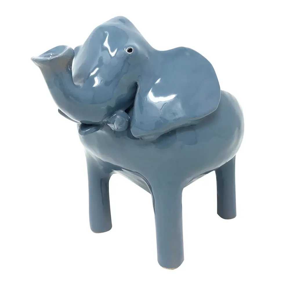 5" X 7" X 11" Silver Porcelain Ceramic Elephant Sculpture