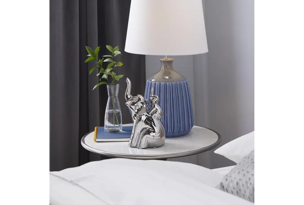 Indulge in the glamorous luxury of plush textures, dazzling details, and sleek finishes to elevate your home and add a sophisticated flair. This silver decorative sculpture set is made from porcelain ceramic materials, ensuring both durability and sophistication. Elephant decorative statue features a glossy silver finish, adding a touch of sophistication to any space.