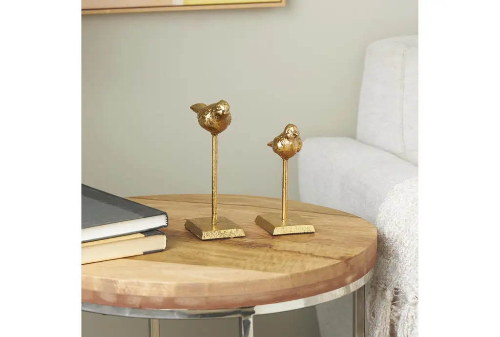 5" X 8" Gold Metal Bird Sculpture With Gold Foil Texturing Set Of 2