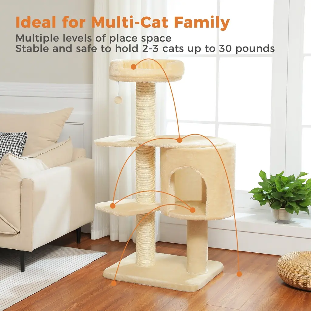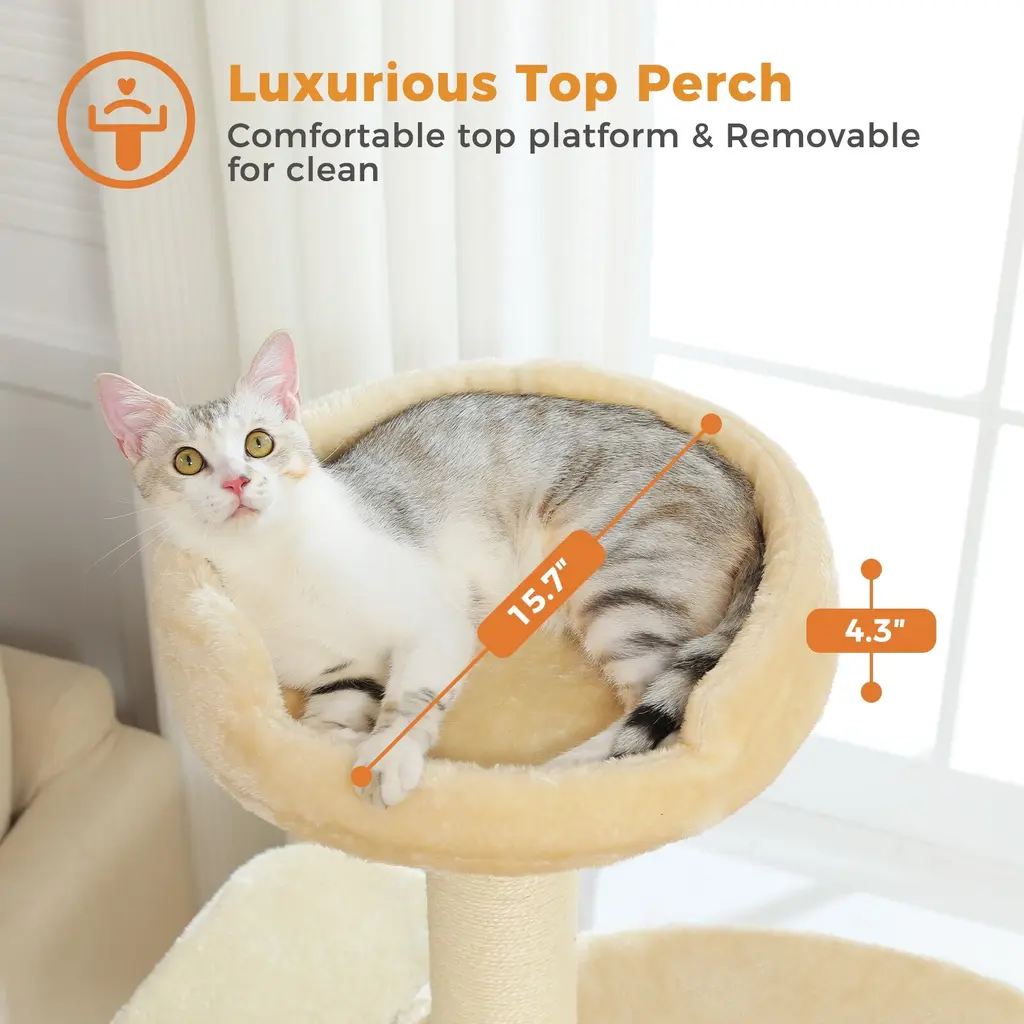 50" Large Cat Tree With 2 Tier Skirting Boards - Beige