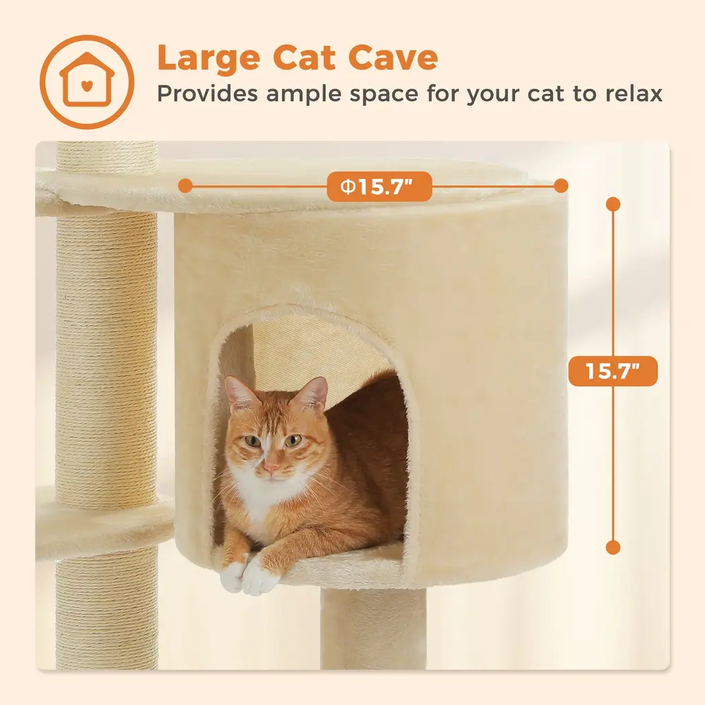 Introducing our Extra Large Cat Tree, specially designed to meet the needs of your indoor cats. With its impressive height of 50 inches and sturdy construction, this cat tree provides the ultimate playground and resting spot for your furry companions. Sturdy Construction: Our extra large cat tree is designed for durability and stability. It features robust 4.1" thick sisal scratching posts and a reinforced double-layered base, ensuring long-lasting use. Spacious Condo: The cat tree includes a generously sized 15.7" x 15.7" round-shaped cat condo, providing your feline friends with a cozy and comfortable space to relax and nap. Support for Large Cats: This cat tree is built to accommodate 2-4 large-sized feline friends weighing up to 30 pounds each, offering them a safe and secure place to play and rest. High-Quality Materials: Crafted from plush fabric, sisal, and engineered wood, our cat tree provides a soft and comfortable surface for your cats to scratch, climb, and explore. Easy Assembly: The cat tree comes with all necessary tools and instructions for hassle-free assembly, allowing you to set it up quickly and effortlessly.