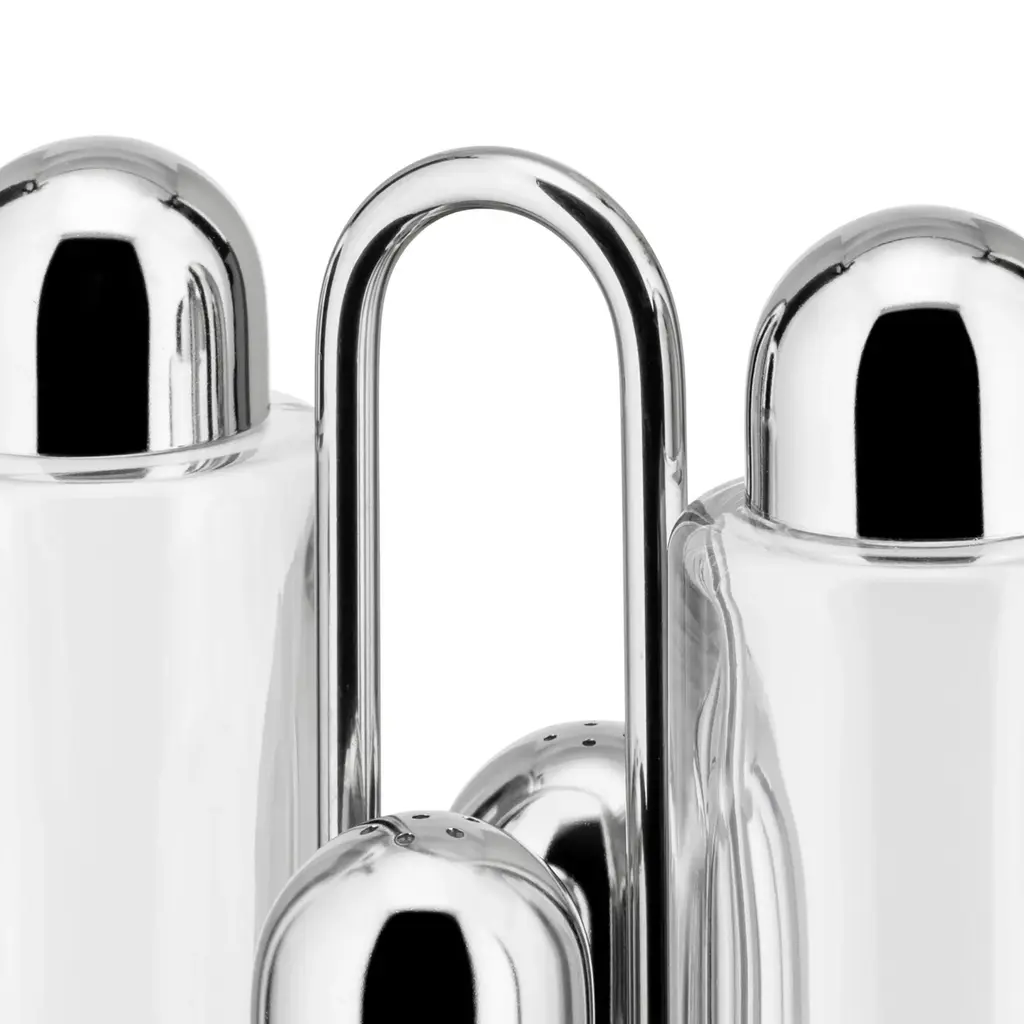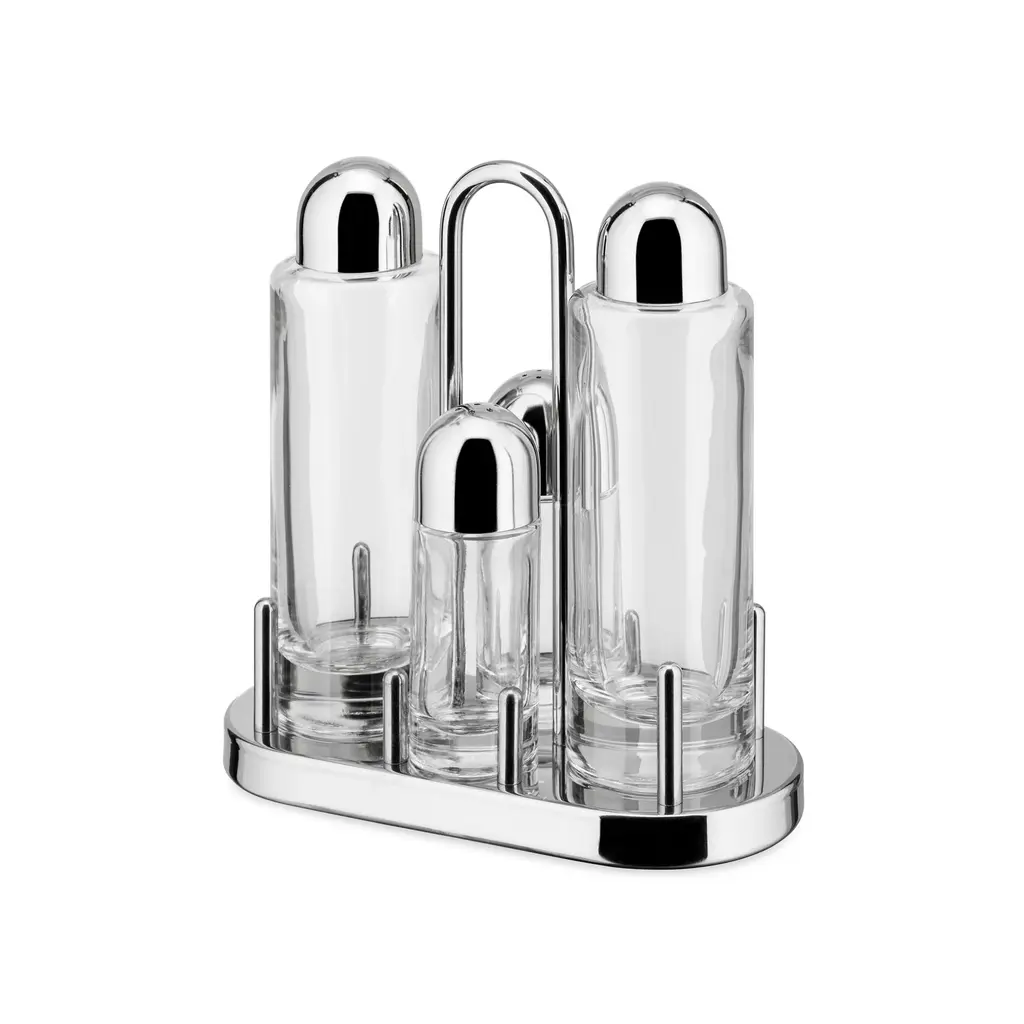 The “5070” condiment set, designed by Ettore Sottsass, is a classic in kitchenware, marrying robust practicality with a gesture of elegance. Designed to hold oil, vinegar, salt, and pepper, this set facilitates carrying all four essentials together with ease. It’s crafted for longevity, virtually indestructible, and straightforward to clean. The design of the set is more than just functional; it captures the hospitable spirit of offering, making it a centerpiece of any meal that speaks to both utility and the joy of dining.