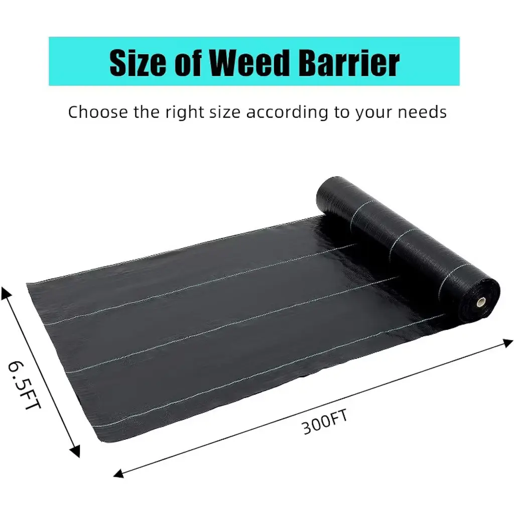 Transform your landscaping and gardening projects with our professional-grade weed barrier fabric, designed for superior performance and lasting durability. This heavy-duty ground cover offers an expansive solution for effective weed control, measuring 6.5 feet in width and 300 feet in length to provide comprehensive coverage for large areas. The fabric's robust construction ensures reliable protection against unwanted weed growth while promoting a healthy environment for your plants.Crafted from high-quality polypropylene, this 3-ounce non-woven fabric combines strength with functionality. Its dense structure effectively blocks sunlight to prevent weed germination, yet remains permeable to air and water¡ªallowing essential moisture and nutrients to reach the soil. This balance ensures your landscape remains vibrant while minimizing maintenance.Ideal for a variety of applications, this versatile weed barrier is suitable for residential gardens, commercial landscapes, construction sites, and erosion control projects. Use it under patios, walkways, gravel paths, or retaining walls for added stability and weed prevention. The fabric is also engineered to withstand harsh weather conditions and resist damage from UV exposure, ensuring long-term performance without degrading.Installation is straightforward and requires no professional expertise. The material is easy to handle, cut, and shape to fit any garden bed or landscape design. For optimal convenience, this weed barrier is available in multiple sizes, including 3ft x 50ft and 4ft x 100ft options, to accommodate both small gardens and large-scale projects. In addition to the standard black, it is offered in dark brown and forest green to better blend with your landscape design.