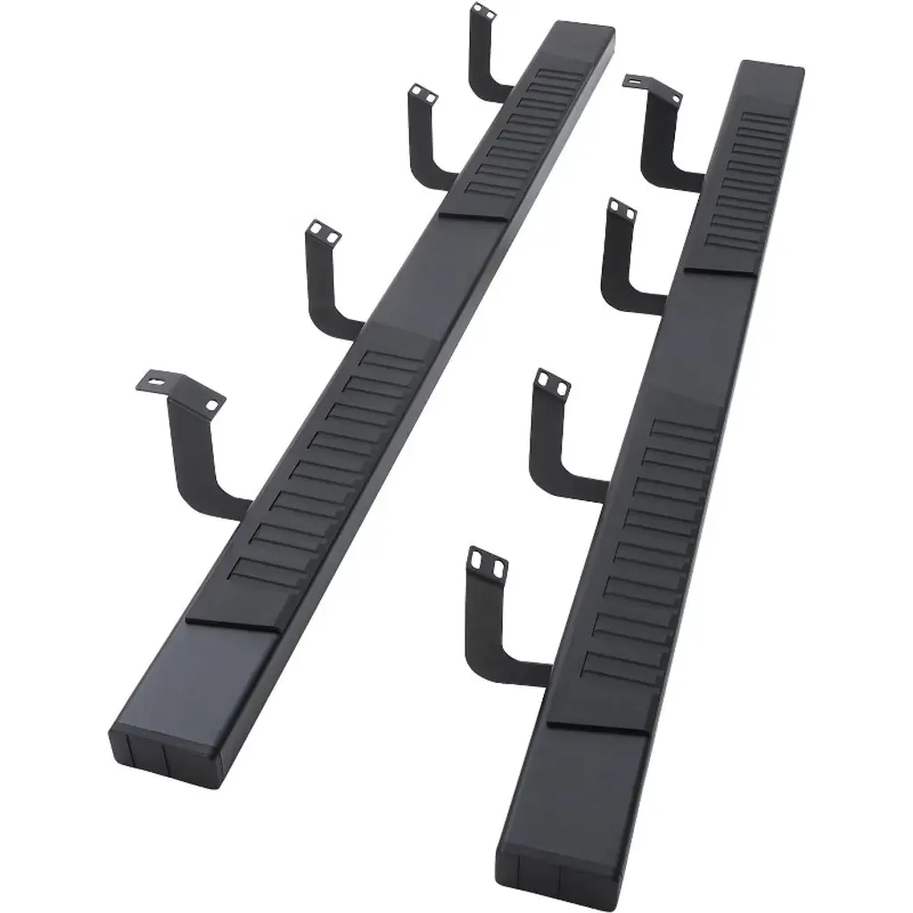 Crafted from high-quality steel, these side steps boast a sturdy construction and durable finish, ensuring optimal protection and longevity. Built for heavy-duty use, these side steps are constructed from robust steel to offer maximum support and safeguarding for your truck. The stainless steel step pad design not only adds to the overall durability but also provides a secure and comfortable place for your foot to rest while entering or exiting the vehicle.