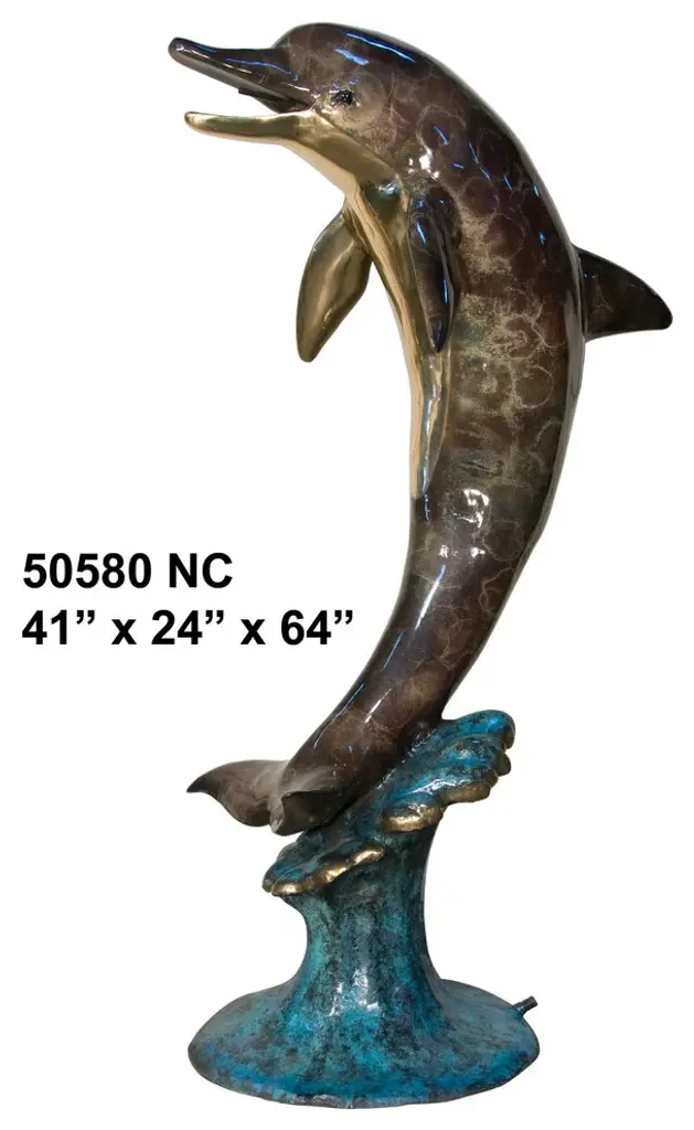 64" Dolphin On A Wave, Special Patina, Style Nc Sculpture