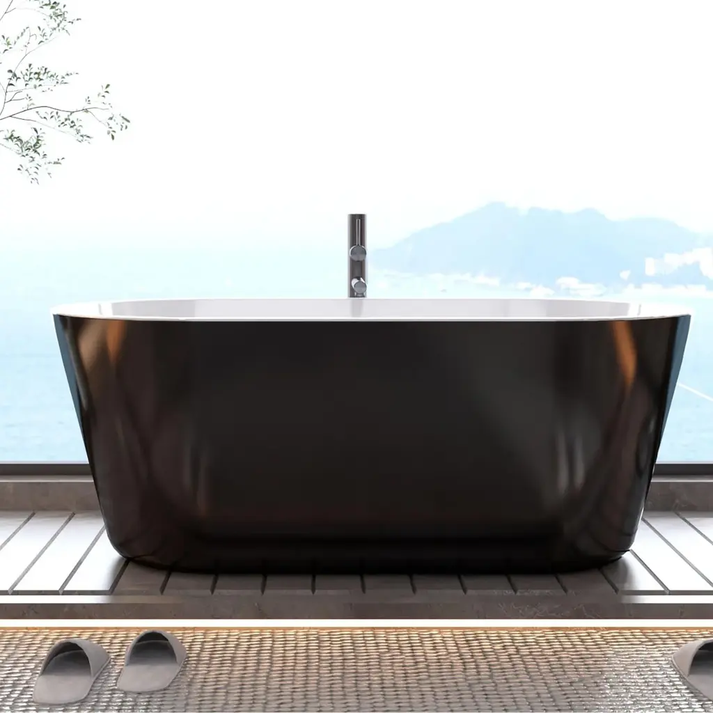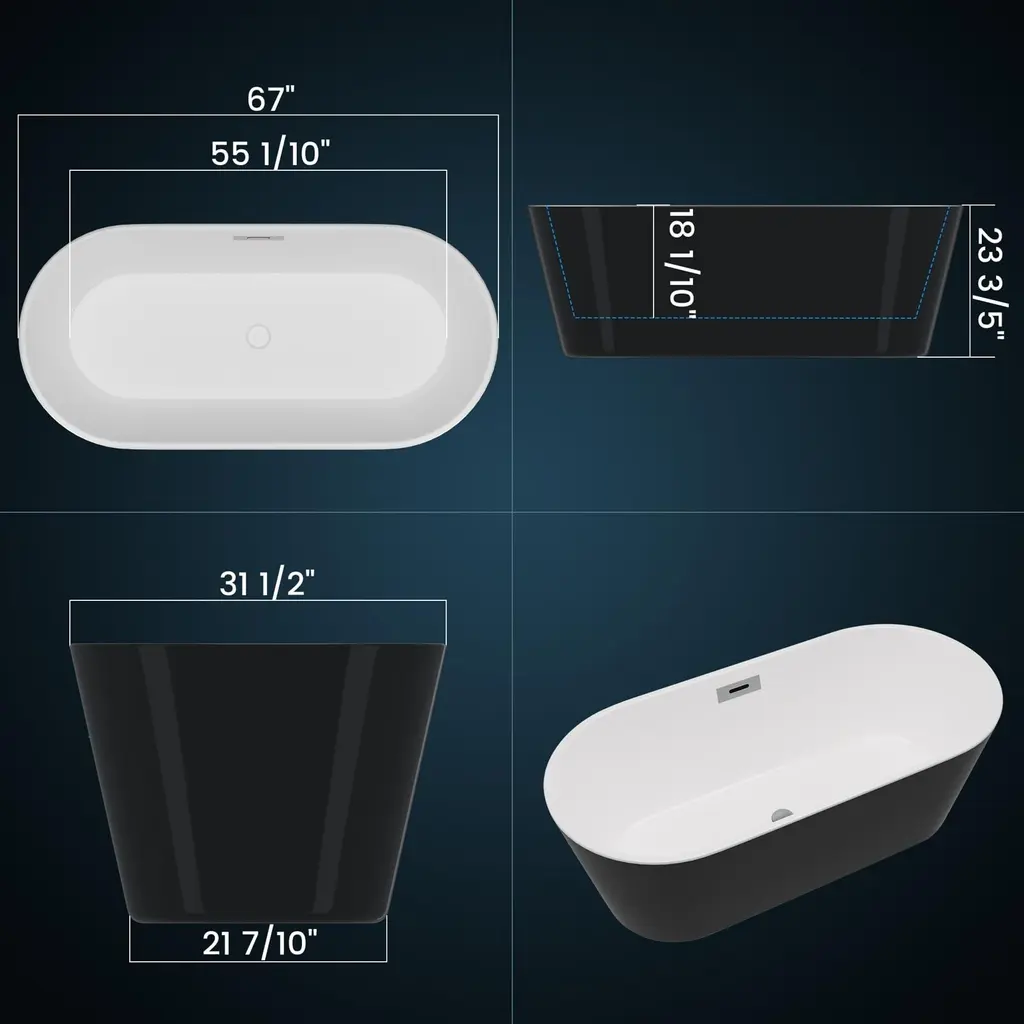 67" Freestanding Bathtub, Black Acrylic Streamline Stand Alone Soaking Bath Tubs For Adult With Overflow And Drain - Matte Black - 67x31x23in