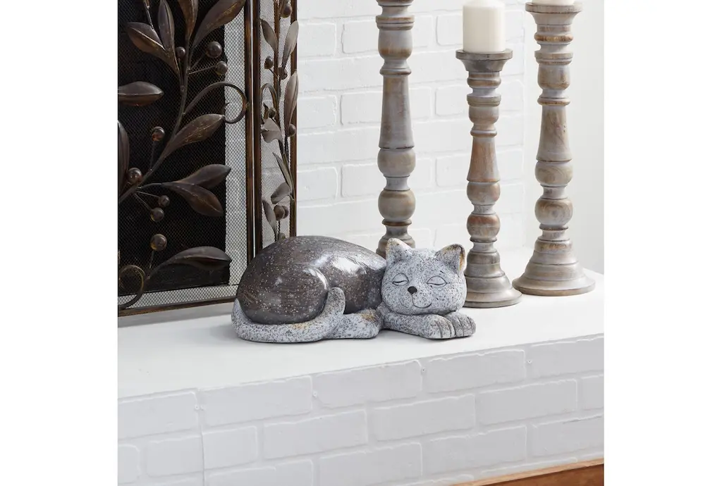 7 Inch Natural Grey Resin Polystone Cat Garden Sculpture | Oval
