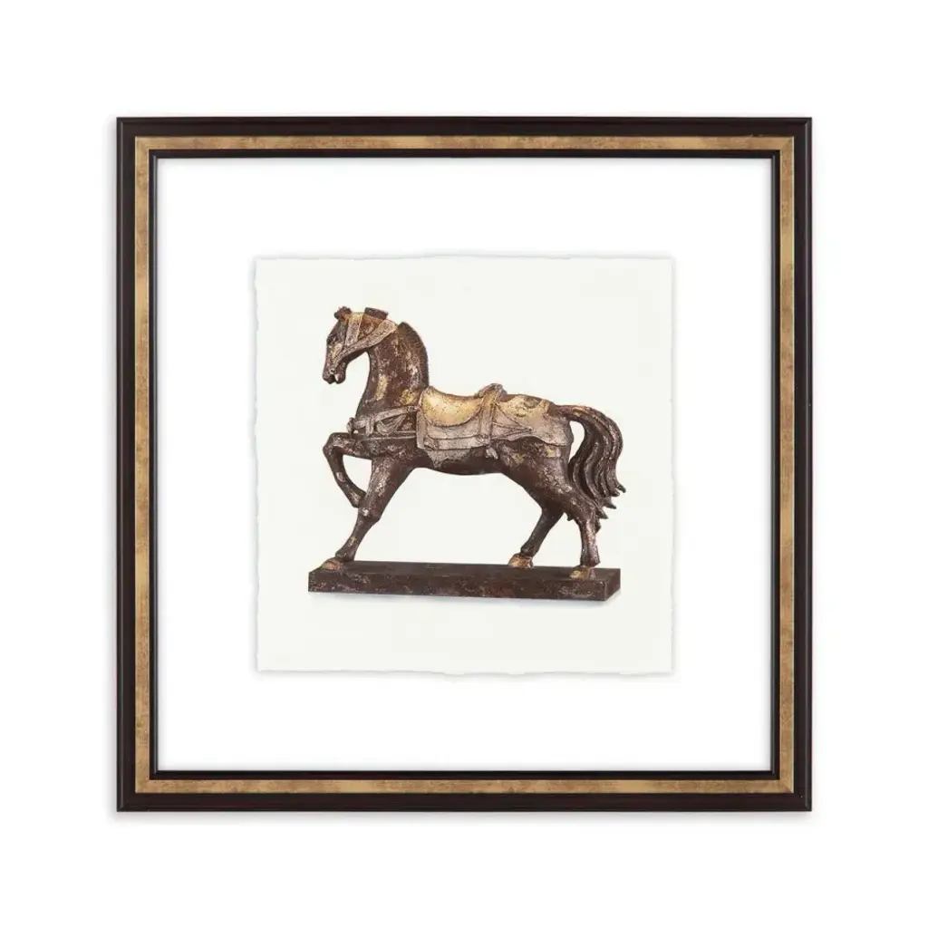 Silver plated carousel horse #7508 by D''Aragenta''s acclaimed artist, Claudio Rodriguez. 3 of 4 in the collection of beautifully crafted sculptures that hearken back to the golden age of the carousel. This masterfully crafted collection pays homage to the master craftsmen, like Gustav Denzel, whose richly carved parade horses, steeds, and war chargers graced the ride that was the centerpiece amusement parks at the turn of the 20th century. Whether caught in the pose of prancing on parade, rearing up, or neighing in anxious anticipation of the charge, these sculptures are richly detailed. The saddles and carousel poles are accented in brass and 24K gold. The riding gears of the steeds are embellished with semi-precious stones. These stunning pieces are certain to be the prized focal point of collections for equine lovers. Acquire all four of these magnificent sculptures for your collection. Limited to 500 pieces. Weight: approx. 10 lbs. About D''Argenta Silver EleganceOrnate in design, exquisite in detail, and beautifully elegant, the Sterling Silver Plated products created by the artists of D''Argenta Silver Elegance are the perfect heirloom quality pieces for any home. The distinctive sterling silver designs stand out against the black neillo inlay and the intricate detail is breathtakingly attractive. D''Argenta Silver Sculptures and objects d''art offer unparalleled excellence in quality and exquisite attention to detail, because they are the hallmarks that have established D''Argenta as a leader in the export of precious metal-finished art for over a quarter of a century. Each of the over 200 limited-edition sculptures, personally signed by the artist, is technically flawless yet competitively priced..the same master-craftsmanship received in pieces that have been gifted to royalty, heads of state and the Vatican. From the surface detail of the innumerable tumuli and broad swells that impart the hides of the elephant collection to the graceful lines that capture the motion of a stallion''s gallop, you will marvel at the beauty of your truly unique acquisition as it graces a special place in your home. Historically, sculptures composed of precious metals were crafted using the traditional hot casting process. 25 years ago, the artisans at renowned metal art company D''Argenta introduced an advanced new metalworking technique that changed the way precious metals are sculpted. D''Argenta''s new method combined cold casting and electroforming to create intricate, finely detailed sculptures. The pieces are initially plated with a . 015 inch (400 micro) thick layer of copper, then plated with silver or (24K) gold at a thickness of . 001 inch (24 micro). Each sculpture''s interior is composed of a polyester fiberglass core that strengthens sleek metal plating. After being formed, each piece is coated with a protective lacquer to prevents tarnishing and maintain luster. This final step ensures that all D''Argenta sculptures, though crafted with fine silver, do not require polish or any type of metal cleaner and can be simply dusted with a dry cloth as needed. Exported around the world and now available in over 25 countries, D''Aragenta''s products have won international acclaim because of their innovative construction and exquisite beauty. In 1981, D''Argenta was recognized with the Bulgarian Government Gold Medal award. In 1992, a D''Argenta sculpture was gifted to His Royal Highness Prince Naruhito of Japan on a visit to Mexico. A nod to the company''s exclusive prestige, D''Argenta sculptures have been gifted to an increasingly long list of dignitaries, including Pope John Paul II, Prince Phillip of England, and his Majesty King Harald of Norway. The gifted artists of D''Argenta include: Manuel Alvarado, Ricardo Del Rio, Enrique Jolly, Javier Arenas Perez, Claudio Rodr