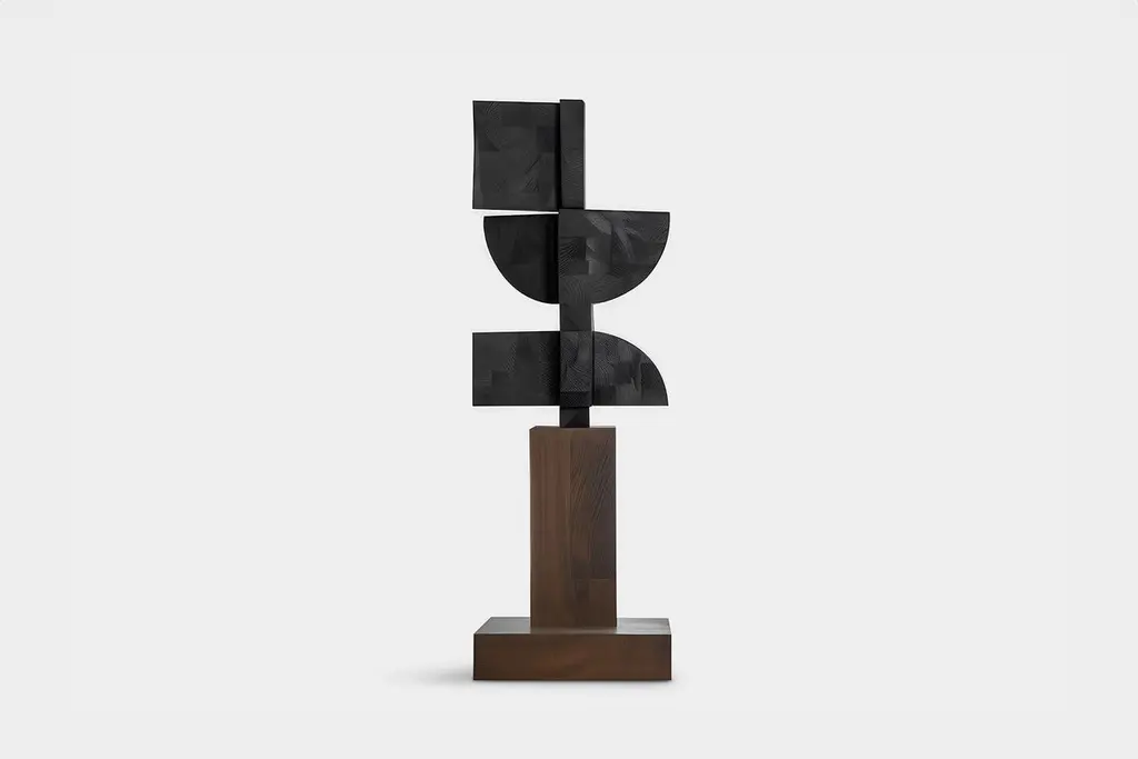 Abstract Dark Wood Art Modern Decoration Unseen Force No32 by Joel Escalona——This monolithic sculpture, designed by the talented Artist Joel Escalona, is a towering example of beauty in craftsmanship. Hand and digital machine made; the standing sculpture stands tall as a monument to the skill of the artist. The wood carved sculpture is a biomorphic pillar with an intriguing, wonderfully undulating surface, crafted with precision and care to create a wonderful patina.Inspired by masters of abstract carving like Constantin Brancusi, Isamu Noguchi and Jean Arp, this outstanding sculpture embodies the spirit of organic art. Each piece is made to order, specific for each client and takes around 3-4 months to complete. Although each sculpture is unique, they all maintain the same spirit, proportions, and dimensions that make them so exceptional.This sculpture, like a beautiful work of art, is prepared to be mounted on a plinth, which is included. The organic sculpture is a beautiful expression of art and nature, a testament to the wonder of the natural world and the power of human creativity. This hand-crafted wood sculpture is a true masterpiece and a magnificent addition to any collection.——NONO is a Mexican design brand with more than 10 years of experience dedicated to the production of interior furnishings, editions, and custom-made projects. At NONO, we create pieces of extraordinary beauty, accommodating the particular needs and tastes of each client with exclusive high-quality designs.————Some details to consider when placing an order with us:• Catalog images are digitally generated. Actual products may slightly vary in texture, grain, and final finish due to natural material differences. Despite these variations, our expertise ensures each piece maintains high quality and matches the intended design.• All of our products are made to order, and the lead time for standard products is estimated to be 9 to 12 weeks, plus shipping time. However, special pieces or sculptures may require a longer lead time.• We offer customization in dimensions and finish for all of our furniture pieces, which may result in additional charges.• We only facilitate freight services by a third party. The client is solely responsible for any associated import/export taxes, as well as any necessary customs paperwork.• We are not responsible for any damages that may occur during shipping or for any customs-related delays.