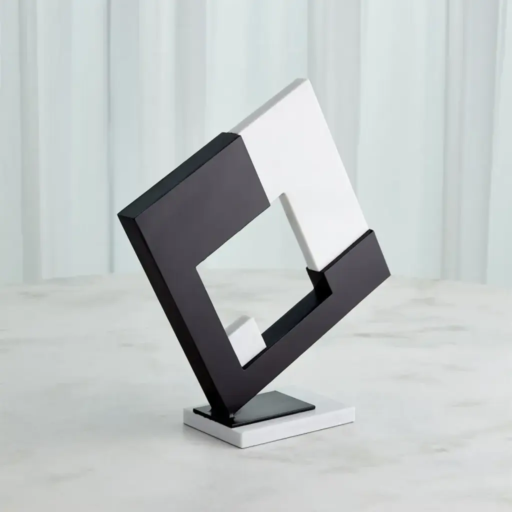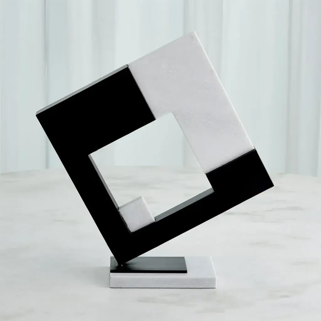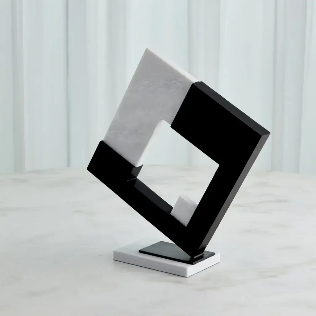 The Abstract Sculpture is constructed of white marble and iron with a matte black finish. From a fashion forward perspective, Global Views offers accessories, furniture, statement lighting, and an assortment of rugs and mirrors to add beauty and joy to your home.