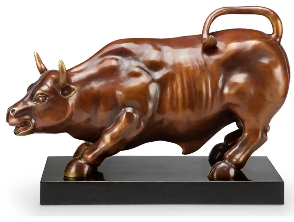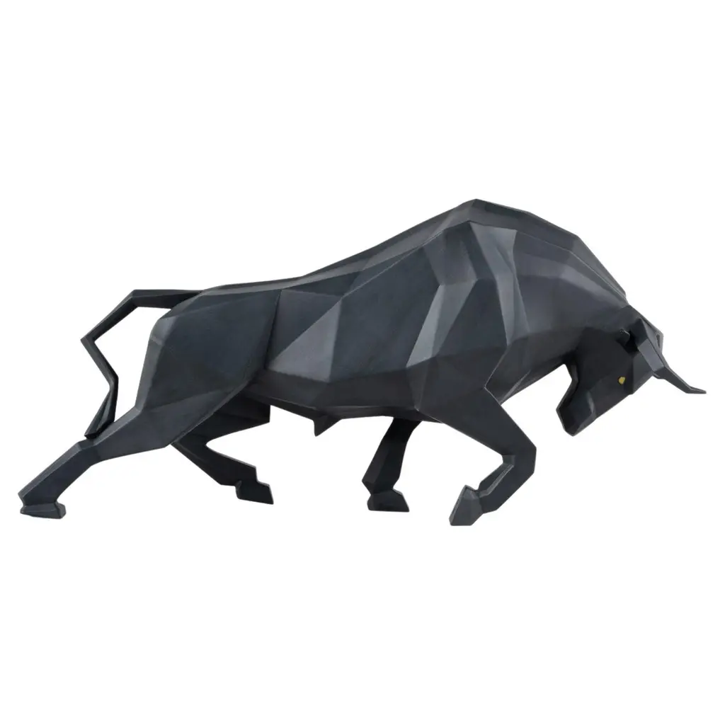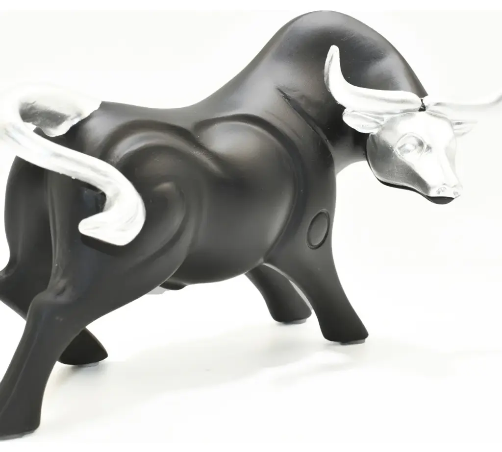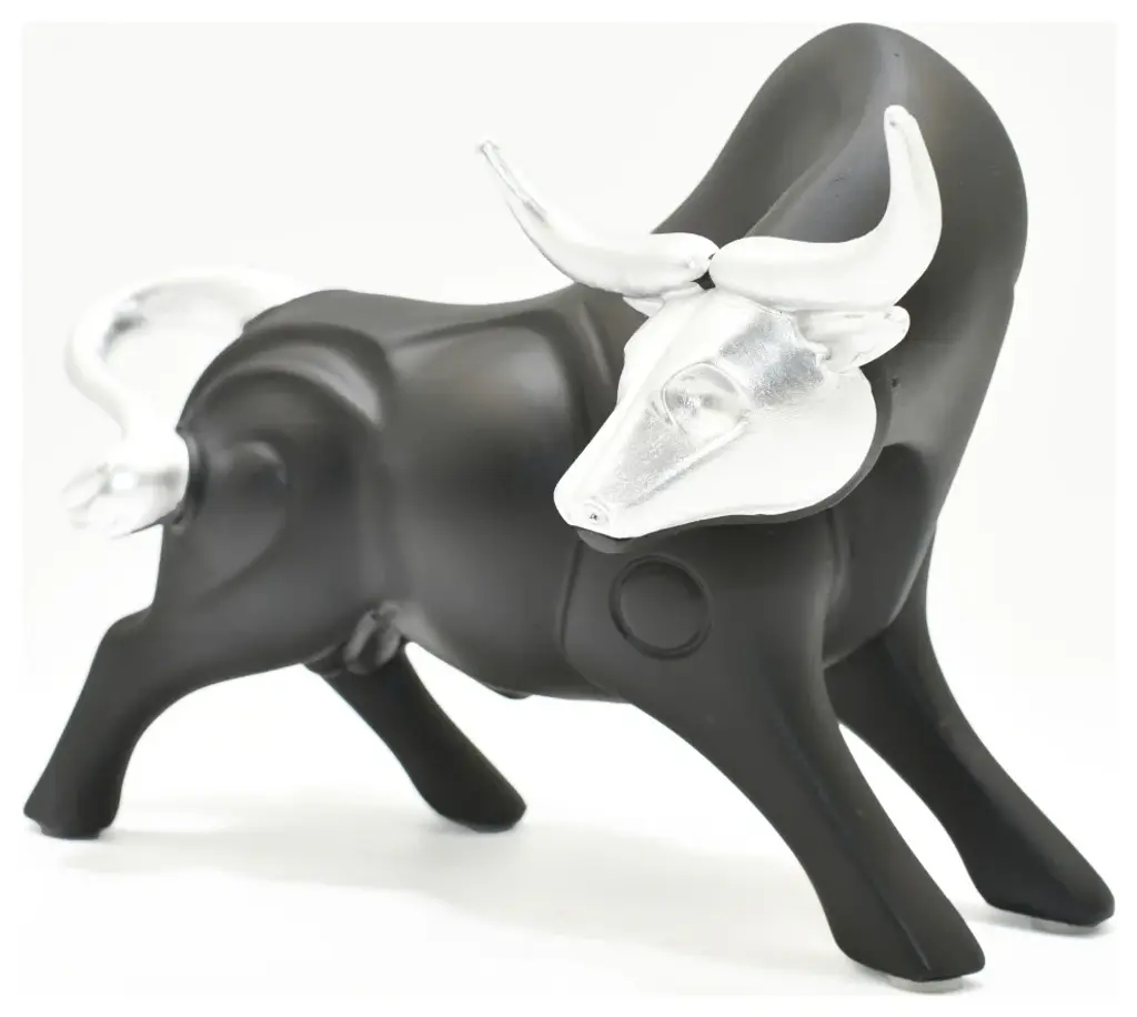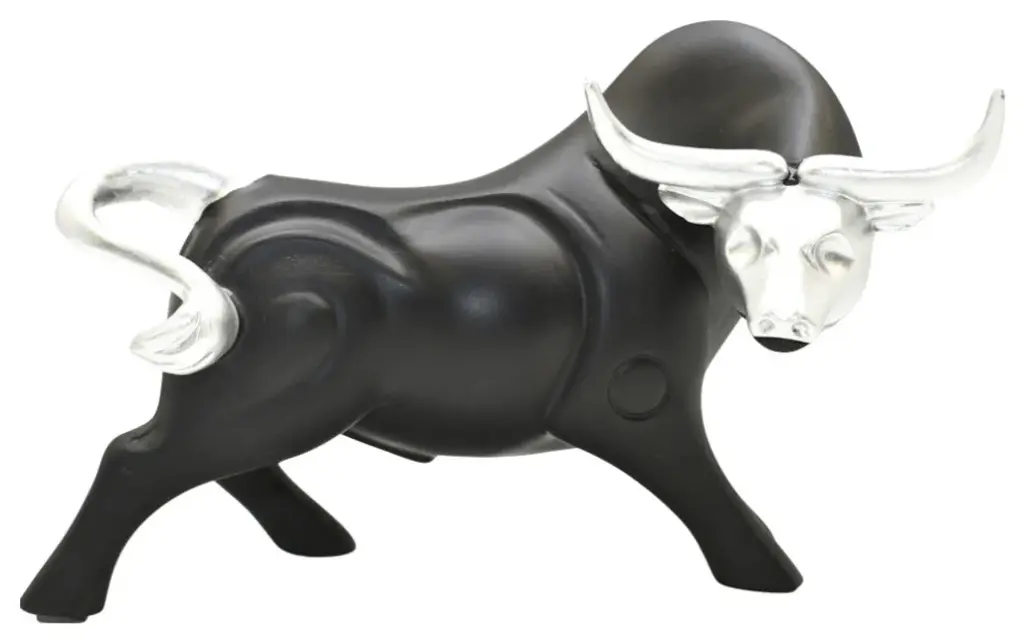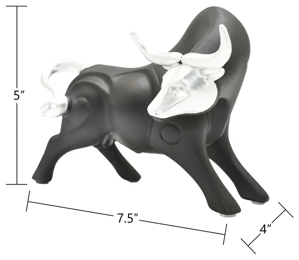 Adam & Friends Home Decor Strong Bull Sculpture, Black And Silver