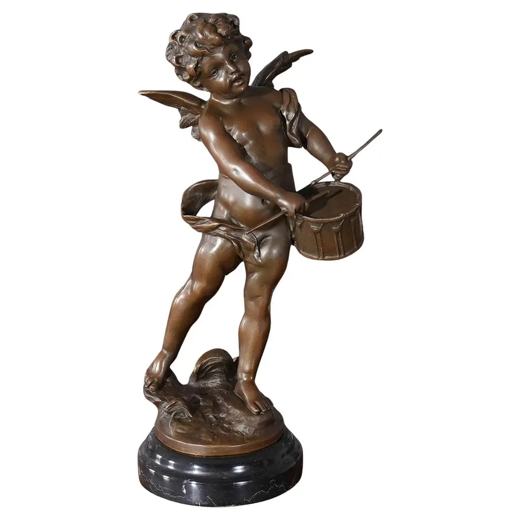 This amazing and creative statue of a young African American boy playing his violin is exquisite. The sculpture is made with the creation of your imagination. His eyes are looking forward, jovially admiring his audience. This bronze statue is cast in the traditional lost-wax method, with brown and green patina finish, which highlights the exceptionally fine detail and guarantees lasting heirloom beauty. The piece would stand out in any room and catch the eyes of any viewer, making it a great addition for any space. This bronze statue is a perfect fit for any art or music lover home. Size: 31"L x 28"W x 50"H. Weight is: 60Lb
