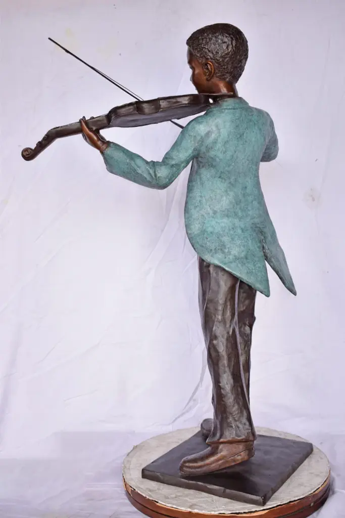 African American Boy Playing Violin Bronze Statue - Size: 31"l X 28"w X 50"h.