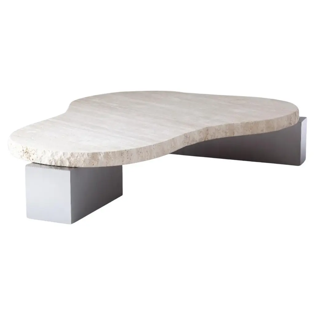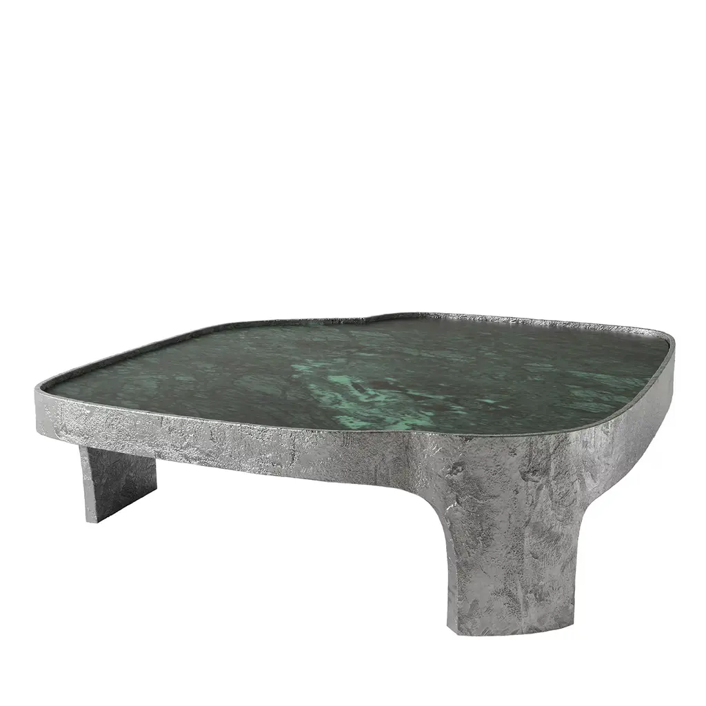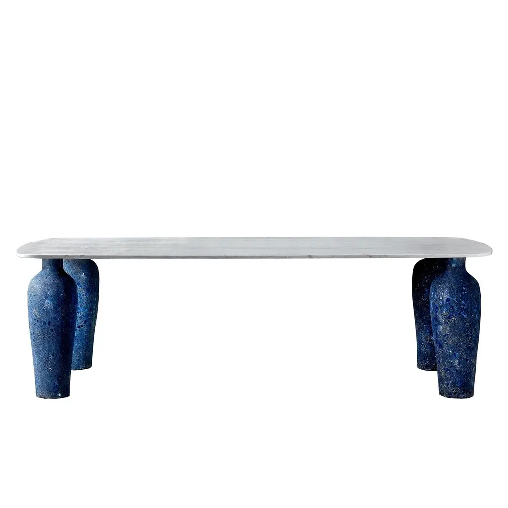"A fragment from distant planets segmented in two parts intersects an archetypal plane conveying a cosmic sense of transformation. Stone and metal combined create functional sculptures, unique in their essence, simulating otherworldly landscapes." Centerpiece made of calendered metal structure in bronze finishing with manganese salt treatment. Natural Lapis Lazuli elements fixed to the structure. Variation Details: Centerpiece made of calendered metal structure in bronze finishing with manganese salt treatment. Natural stone elements fixed to the structure to choose from Obsidian, raw Labradorite, raw Amethyst, Lapis Lazuli.
