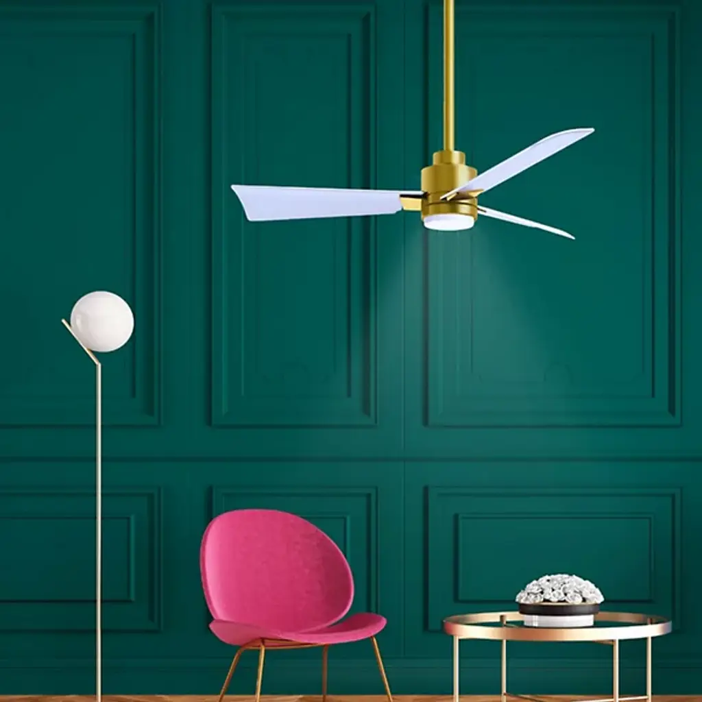 Behold the Alessandra LED Ceiling Fan by Atlas Fan Company, a masterpiece designed to elevate your living space. Meticulously crafted from cast aluminum and heavy stamped steel, its body embodies both robustness and sophistication. With weather-resistant ABS blades, it gracefully braves the elements. Designed to seamlessly fit your decor, it accommodates a 60-degree slant ceiling mechanism, blending into your sanctuary effortlessly. Featuring an integrated LED light kit, this fan lets you fine-tune both lumens and color temperature to match your mood, crafting the ideal atmosphere. Plus, with its 6-speed motor, you have full control to set the stage for those unforgettable moments with precision.