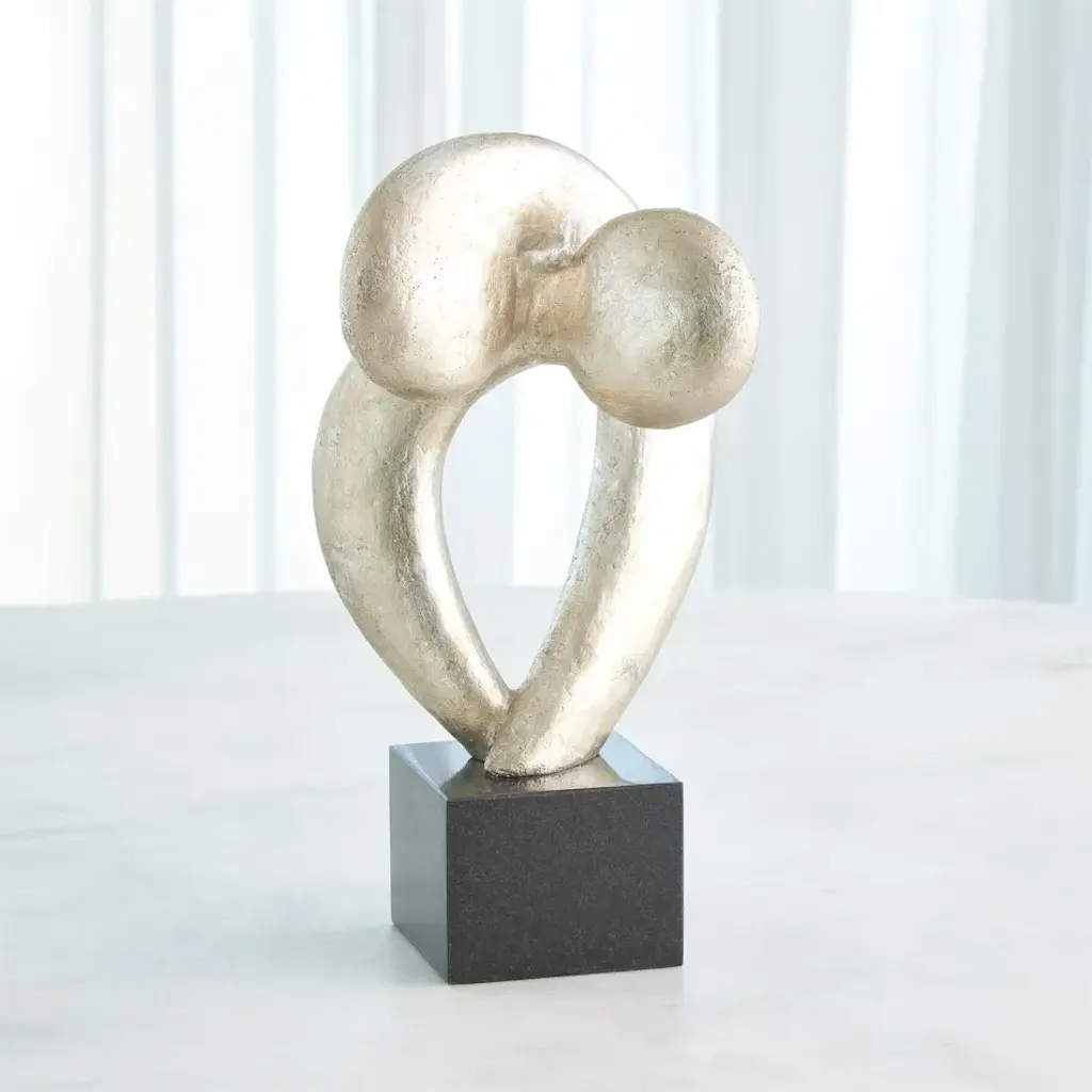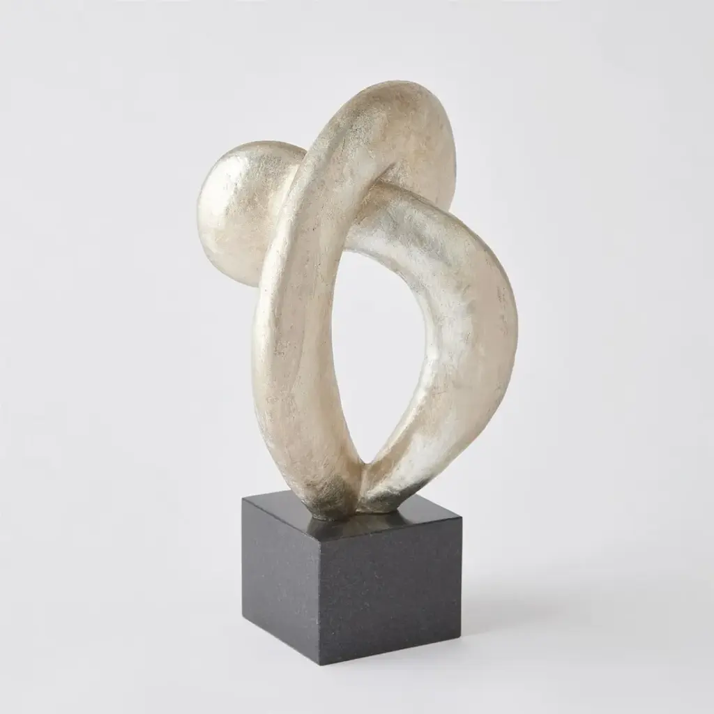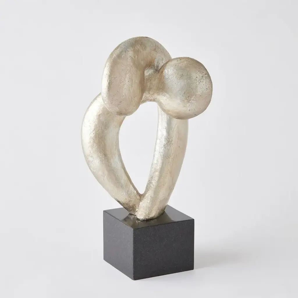 The striking Align Sculpture is crafted from cast iron and features a hand-painted silver leaf finish. It gracefully rests on a sleek black marble base, offering a perfect blend of modern elegance and craftsmanship. From a fashion forward perspective, Global Views offers accessories, furniture, statement lighting, and an assortment of rugs and mirrors to add beauty and joy to your home.
