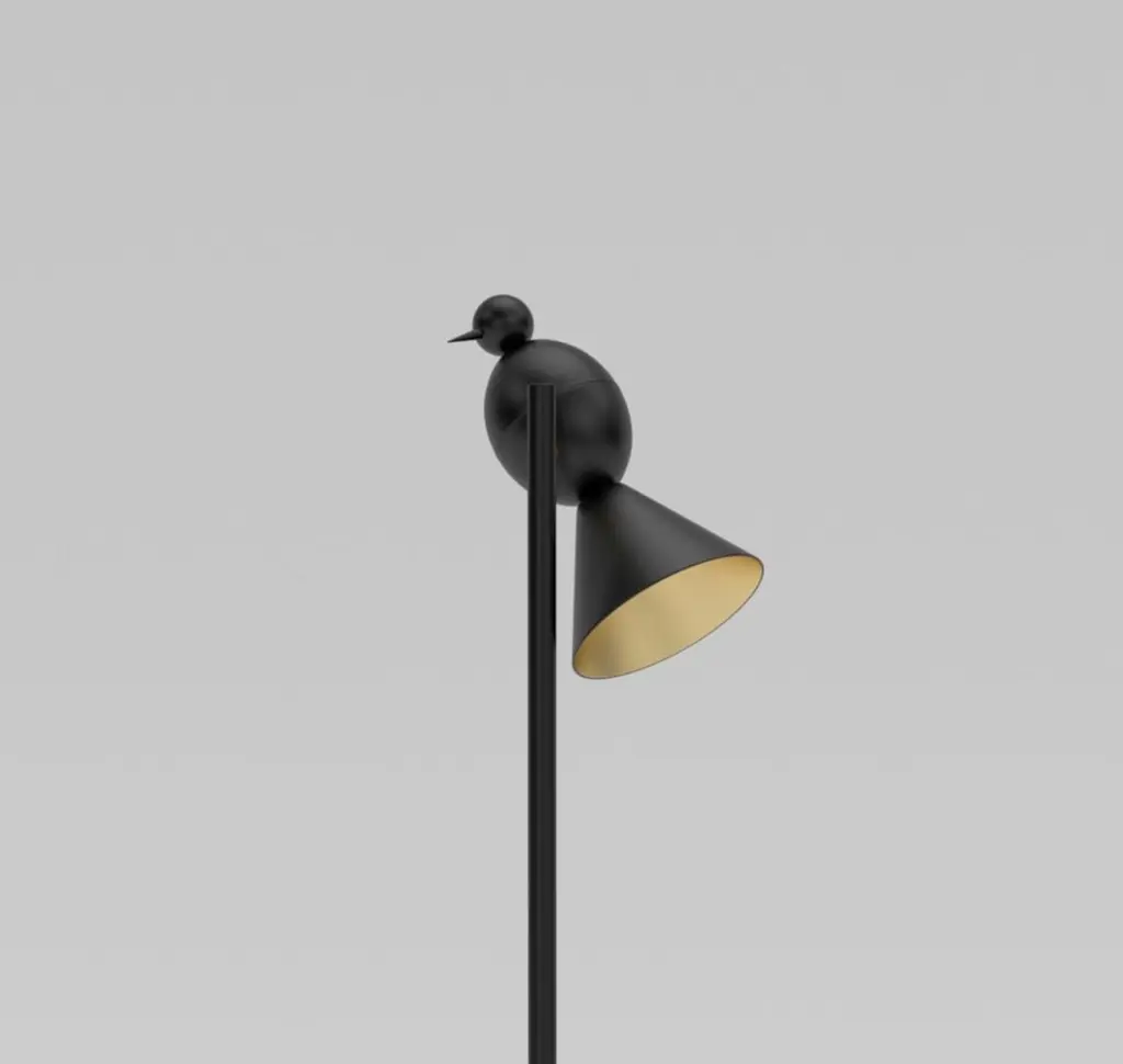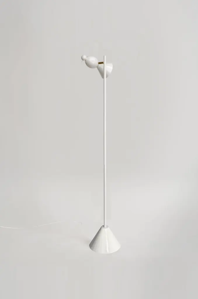 Alouette 1 Bird Floor Light by Atelier AretiDimensions: D 20 x W 20 x H 100 cm.Materials: Powder-coated metal.Available in black, white, or color versions.Also available with white reflector.All our lamps can be wired according to each country. If sold to the USA it will be wired for the USA for instance.Atelier Areti was established by sisters Gwendolyn and Guillane Kerschbaumer.Gwendolyn and Guillane’s background is in visual arts - drawing and sculpture, architecture, and design. Their work reflects this interest in both the object and space, exploring and existing between the sculptural quality of the object and its spatial dynamic.‘We strive to develop something new and beautiful through our work. We are driven by curiosity and the desire to explore works that touch us on a deeper, direct emotional level as well as engage us in a more conscious conceptual way.These artistic ambitions need to be realized and developed in the actual material product. The material realization gives the design it’s place in our daily life. A well done object will be valued for a long time; we aim to create pieces that remain relevant through their beauty, function, and quality.’