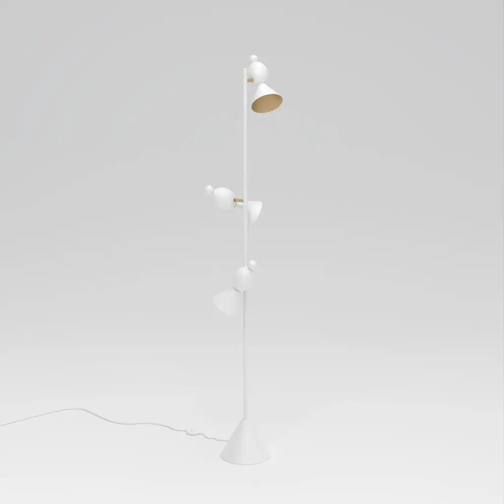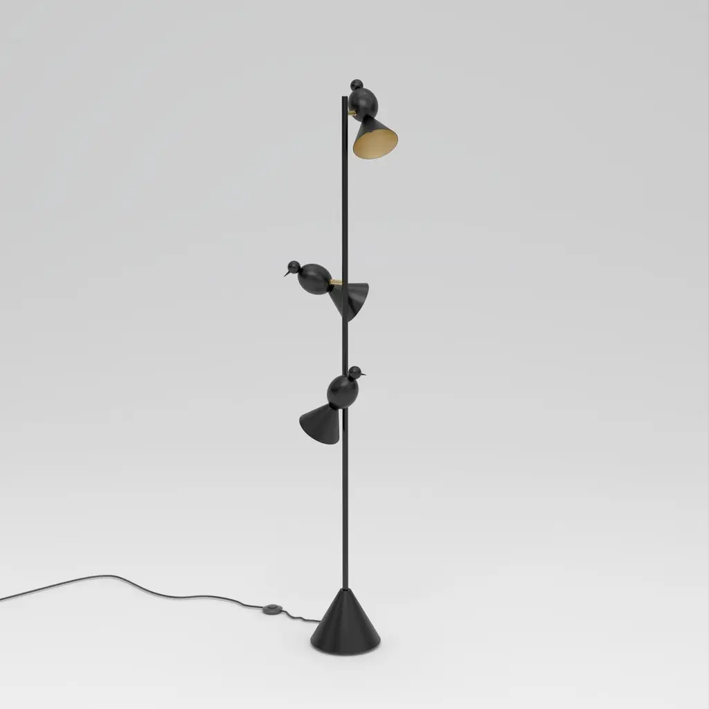 Alouette 3 Birds Floor Light by Atelier AretiDimensions: D 20 x W 20 x H 150 cm.Materials: Powder-coated metal.Available in black, white, or color versions.Also available with white reflector.All our lamps can be wired according to each country. If sold to the USA it will be wired for the USA for instance.Atelier Areti was established by sisters Gwendolyn and Guillane Kerschbaumer.Gwendolyn and Guillane’s background is in visual arts - drawing and sculpture, architecture, and design. Their work reflects this interest in both the object and space, exploring and existing between the sculptural quality of the object and its spatial dynamic.‘We strive to develop something new and beautiful through our work. We are driven by curiosity and the desire to explore works that touch us on a deeper, direct emotional level as well as engage us in a more conscious conceptual way.These artistic ambitions need to be realized and developed in the actual material product. The material realization gives the design it’s place in our daily life. A well done object will be valued for a long time; we aim to create pieces that remain relevant through their beauty, function, and quality.’