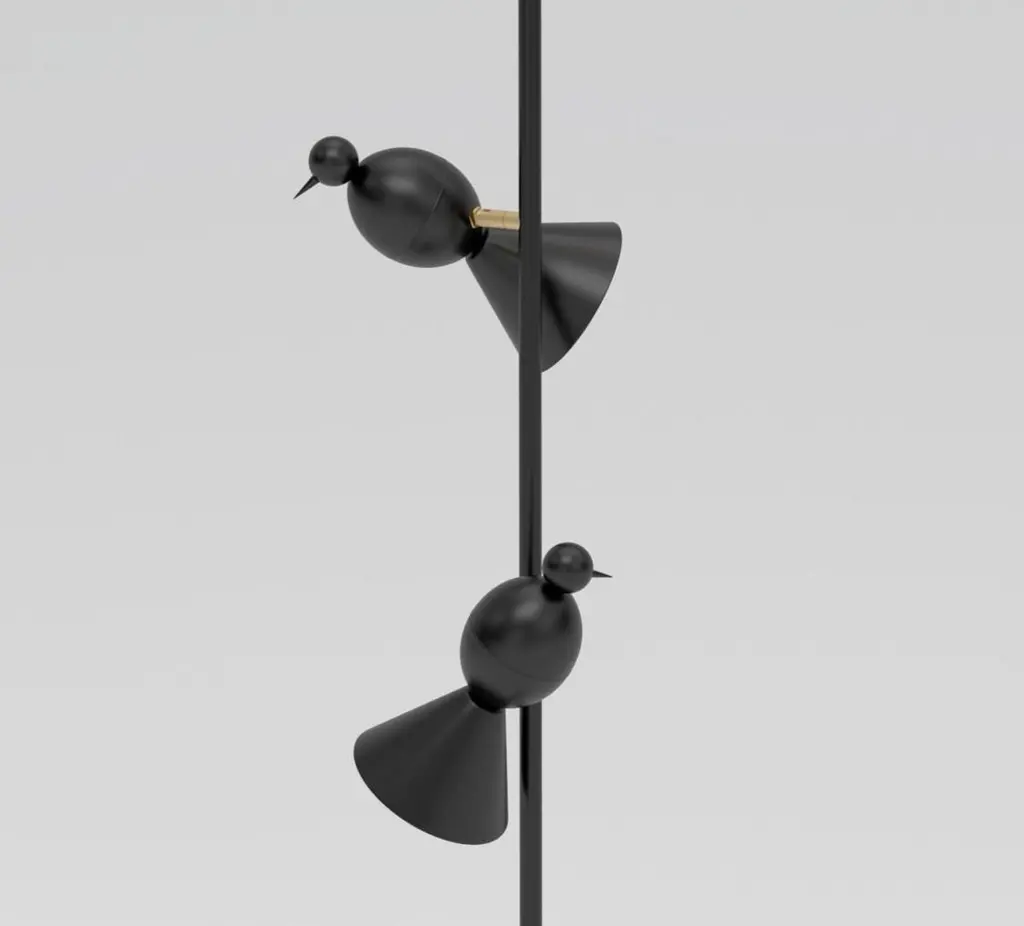 Alouette 3 Birds Floor Light by Atelier AretiDimensions: D 20 x W 20 x H 150 cm.Materials: Powder-coated metal.Available in black, white, or color versions.Also available with white reflector.All our lamps can be wired according to each country. If sold to the USA it will be wired for the USA for instance.Atelier Areti was established by sisters Gwendolyn and Guillane Kerschbaumer.Gwendolyn and Guillane’s background is in visual arts - drawing and sculpture, architecture, and design. Their work reflects this interest in both the object and space, exploring and existing between the sculptural quality of the object and its spatial dynamic.‘We strive to develop something new and beautiful through our work. We are driven by curiosity and the desire to explore works that touch us on a deeper, direct emotional level as well as engage us in a more conscious conceptual way.These artistic ambitions need to be realized and developed in the actual material product. The material realization gives the design it’s place in our daily life. A well done object will be valued for a long time; we aim to create pieces that remain relevant through their beauty, function, and quality.’