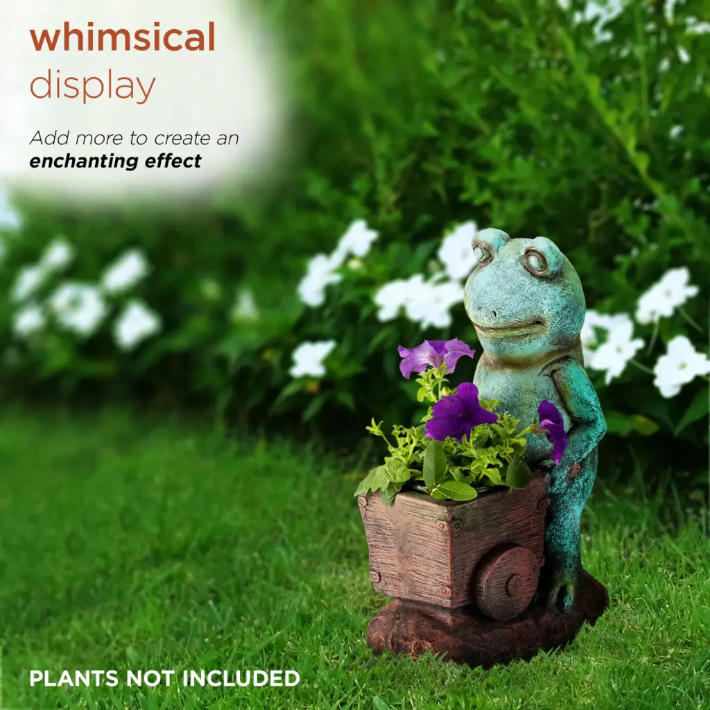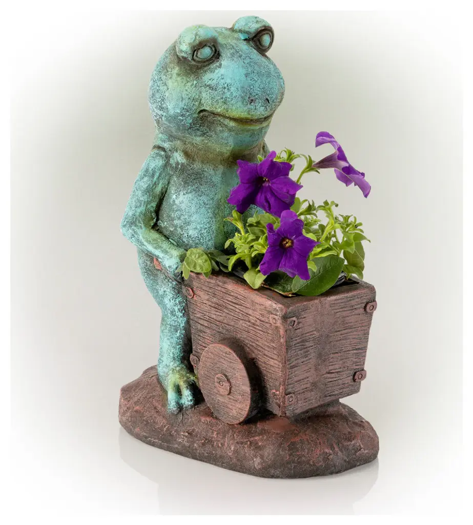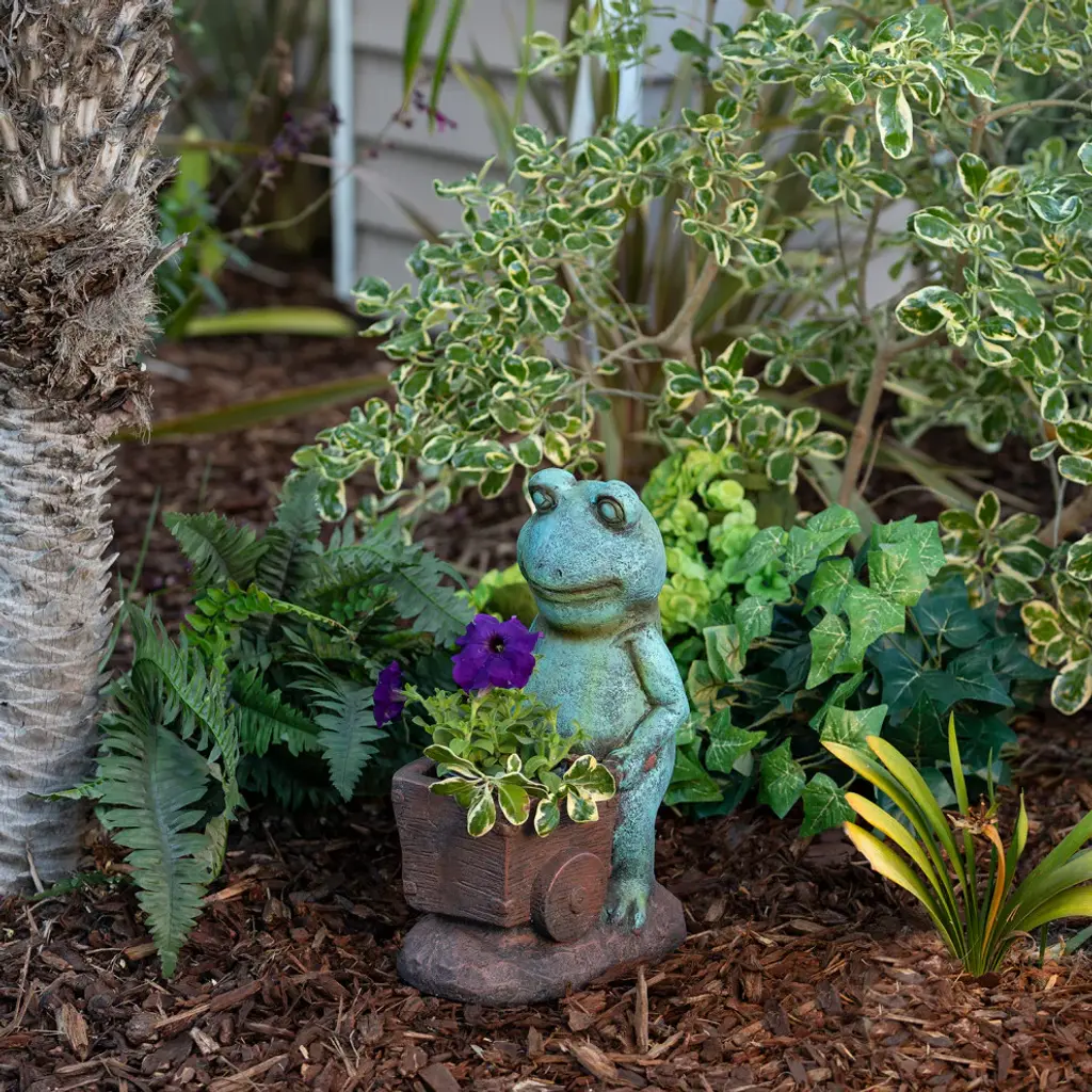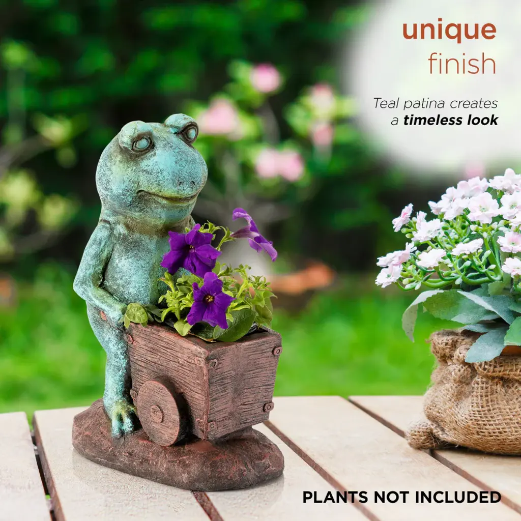 Add a whimsical and playful look to your outdoor decor with Alpine''s animated sculptures. These durable statues are crafted with life-like details that bring a special touch to your indoor and outdoor decor. These captivating animal replicas will be a true refreshment and a real delight to any passerby. Whether you use this as a decoration in your garden, on the patio, on your deck, or near the entranceway in front of your home, Alpine''s sculptures are sure to bring a playful and inviting atmosphere, while leaving a long-lasting impression!• Measures 10"W x 7"L x 15"H, made of MGO• Features an adorable green colored frog pushing a brown cart that adds a motivating presence to your outdoor landscape''the design adds a fun and unique look that will put a smile on the face of any passerby• Made of durable materials that will perfect your home, yard, and garden decor• Includes a limited 1-year, hassle-free manufacturer''s warranty