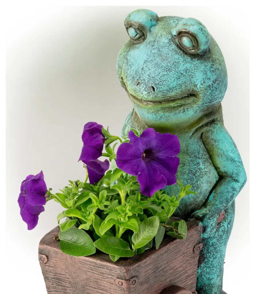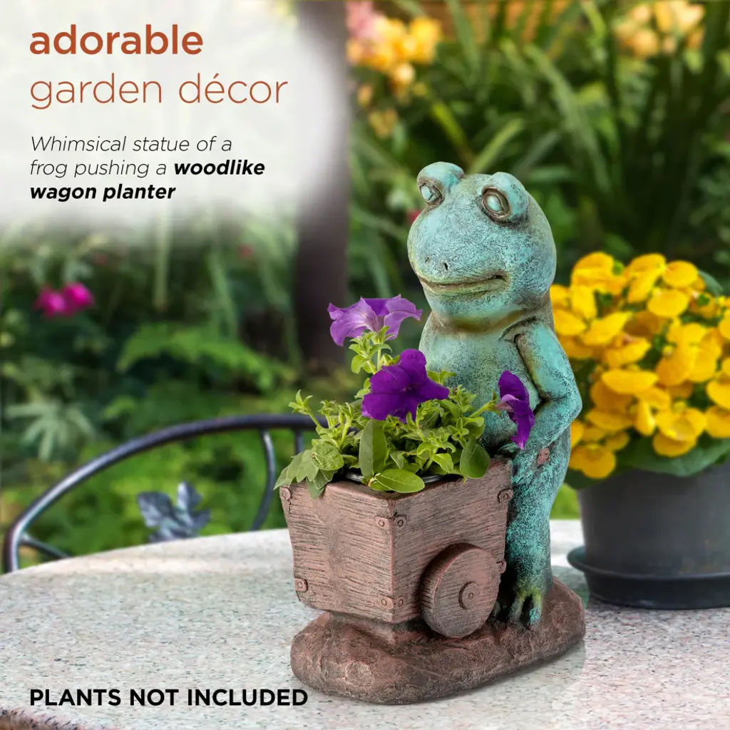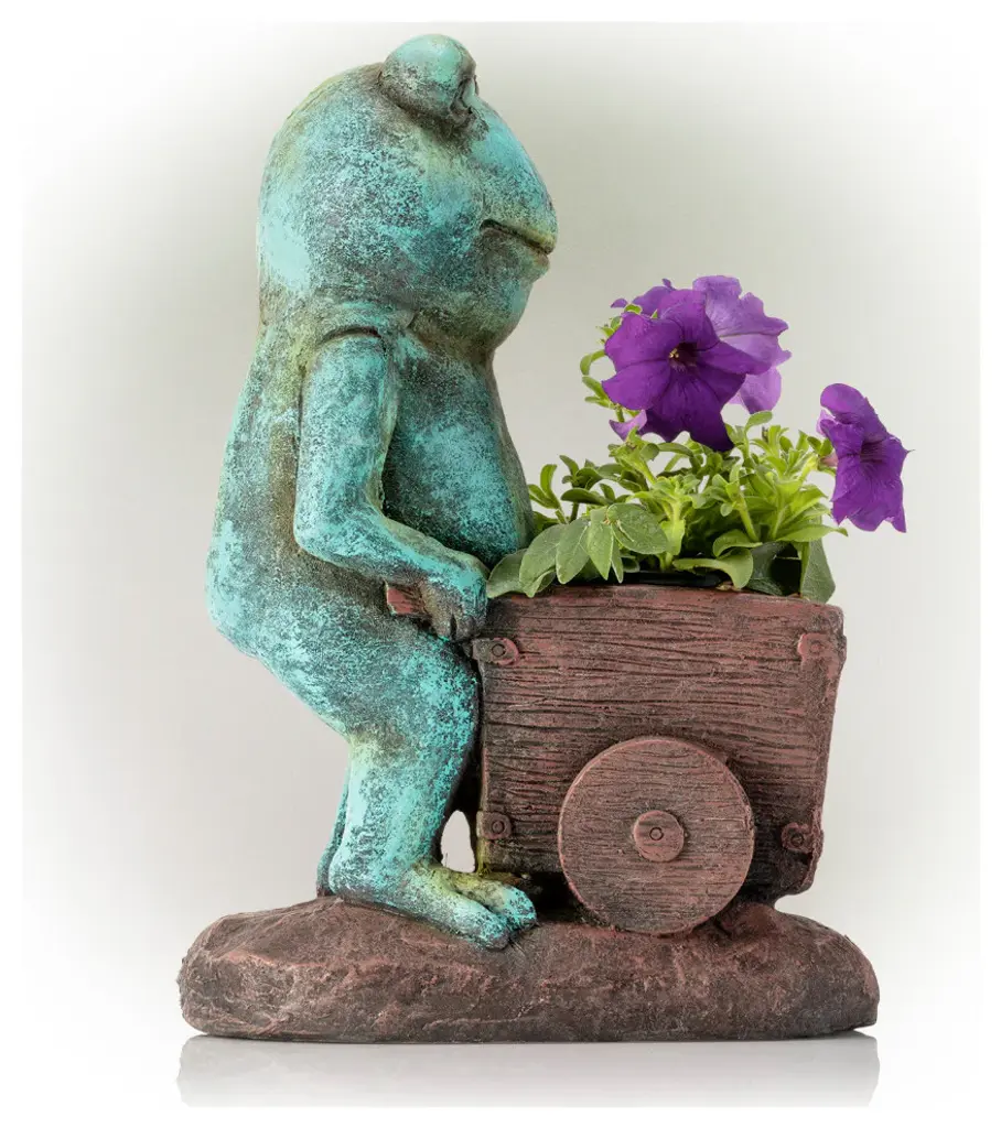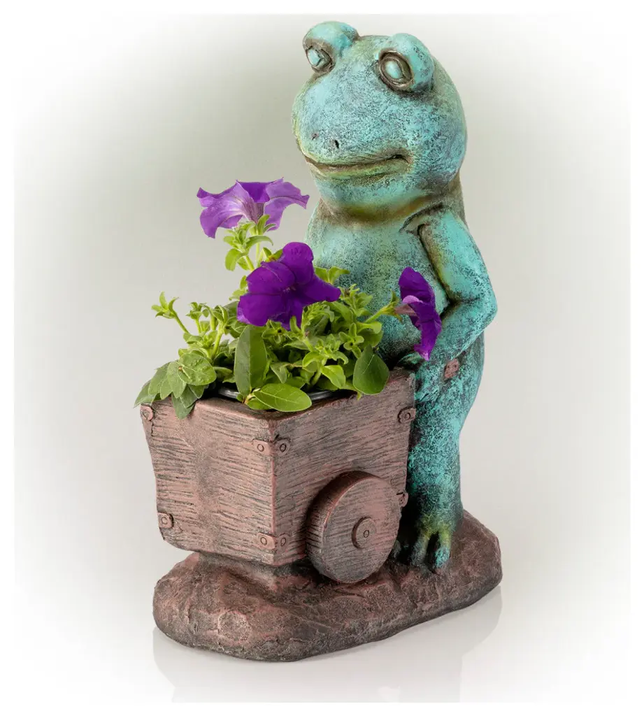 Add a whimsical and playful look to your outdoor decor with Alpine''s animated sculptures. These durable statues are crafted with life-like details that bring a special touch to your indoor and outdoor decor. These captivating animal replicas will be a true refreshment and a real delight to any passerby. Whether you use this as a decoration in your garden, on the patio, on your deck, or near the entranceway in front of your home, Alpine''s sculptures are sure to bring a playful and inviting atmosphere, while leaving a long-lasting impression!• Measures 10"W x 7"L x 15"H, made of MGO• Features an adorable green colored frog pushing a brown cart that adds a motivating presence to your outdoor landscape''the design adds a fun and unique look that will put a smile on the face of any passerby• Made of durable materials that will perfect your home, yard, and garden decor• Includes a limited 1-year, hassle-free manufacturer''s warranty