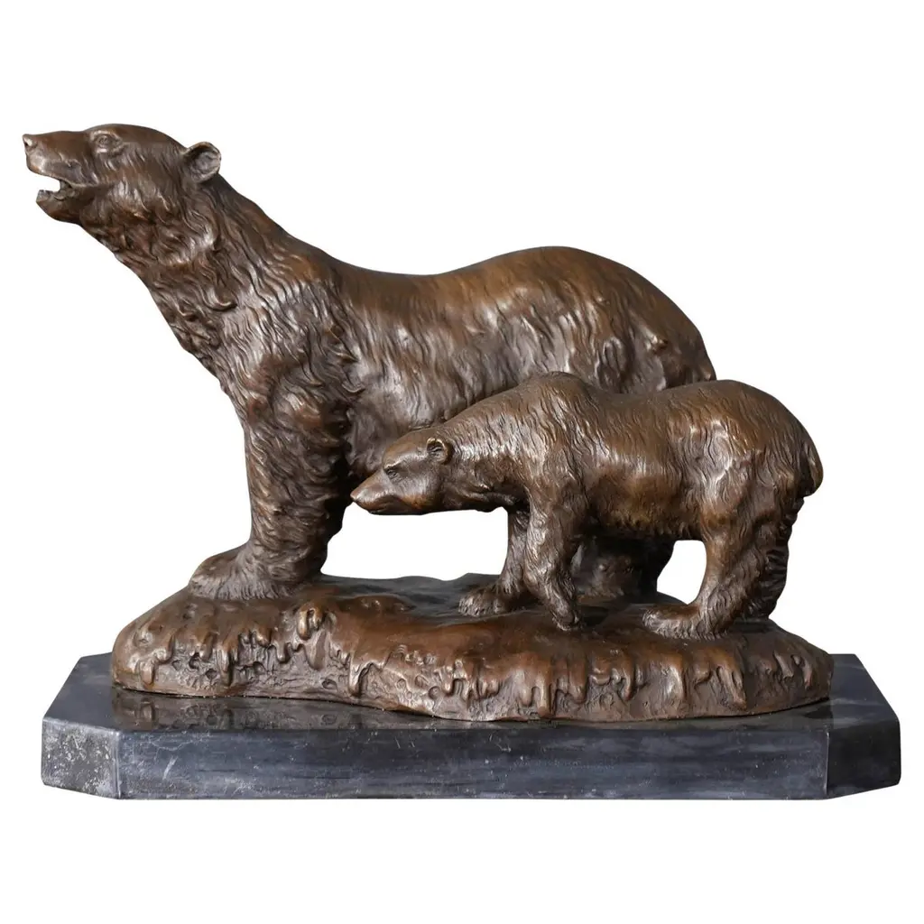 17 1/2 Inches Tall, 25 Inches Long, 13 1/2 Inches WideCast AluminumBronze FinishFor Indoor or Outdoor DisplayA Great Yard AccentAdd a touch of playful nature to your garden with this endearing bronze-finished statue. Crafted from durable cast aluminum, this delightful piece portrays two bear cubs engaged in playful antics atop their serene Mama Bear. Standing at a height of 17 1/2 inches, with a width of 25 inches and a depth of 13 1/2 inches, it''s a charming addition to your outdoor environment. Designed to thrive in outdoor settings, this bear family statue boasts a weather-resistant finish that can withstand the elements, making it ideal for your garden or yard. The bronze finish adds a timeless quality, ensuring it remains an attractive focal point for years to come. Whether nestled among your flowers or gracing a cozy corner of your garden, this heartwarming bear sculpture captures the essence of family bonds and the beauty of nature.