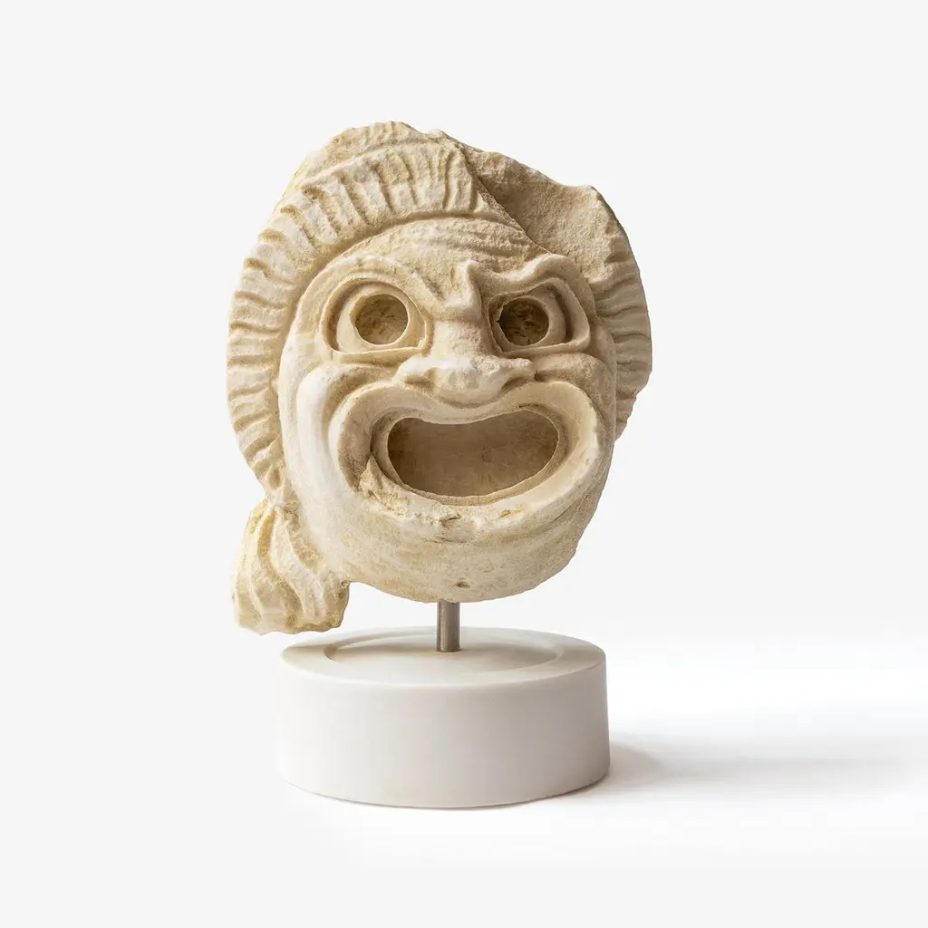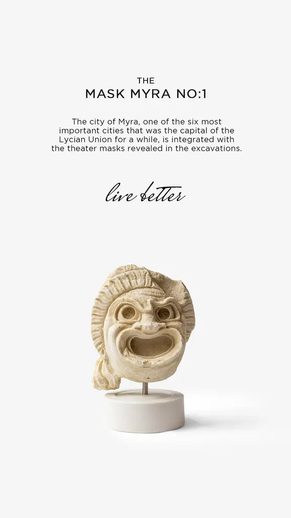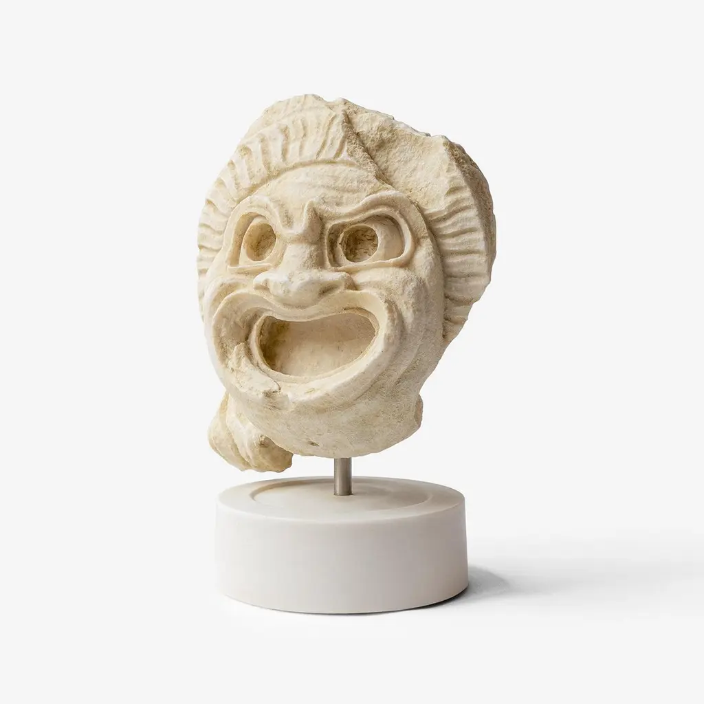 It was found in the ancient city of Myra in Antalya, Turkey. It was used as a mask in theaters during the Roman period.The city of Myra, one of the six most important cities that was the capital of the Lycian Union for a while, is integrated with the theater masks revealed in the excavations. Located on the southern outskirts of the acropolis, the theater is considered a well-preserved Roman period theater with both seating rows and stage building, while masks await their place in living spaces as a representative of the city's fame.The most important sculptures in world history are brought to your living spaces by lagu's special selection, using the best materials. It is produced from compressed marble powder.It was produced from the original molds of the works in the museum.It is suitable for indoor and outdoor use.